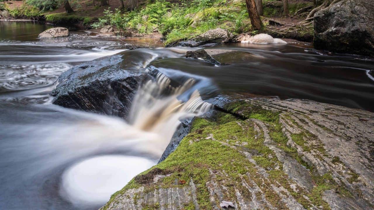 The water is seen cascading over the falls in a dramatic display of natural power. At the base of the falls, an S-curve is taken by the river, creating a unique geological formation that is perfect for photography. Depending on the season you visit, different water levels will be provided by the falls. During the spring melt, the sheer power of the running water can be viewed, while the drier months allow for the exploration of driftwood that was left behind by the receding currents. This trail is a staple for anyone visiting Bracebridge, Muskoka, Ontario, who wishes to see the intersection of water and stone.