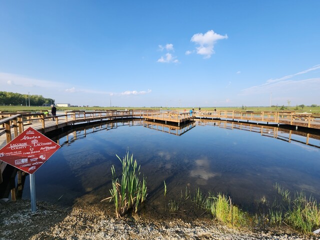 The lure is visible from the road and located in a well-kept park setting with walking paths, accessible fishing docks, and space to wander. It is a quick stop that can easily turn into a longer pause if you feel like stretching your legs.