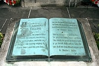 Guelph, Ontario.. is home to John McCrae.  Who is he? Some of you Trivial Pursuit addicts (aka M.M.) will know this one for sure. John McCrae wrote one of the most famous war poems on record – “In Flanders Fields.” It was sort of neat to visit his home. It is a humble home but a floral bonanza. The gardens are rainbows. Next door rests the John McCrae Memorial Gardens. It is also very well done.  A large monument is the centre piece of the gardens. At the foot of the monument rests a stone booklet with open pages and the poem scrawled out for all to read.