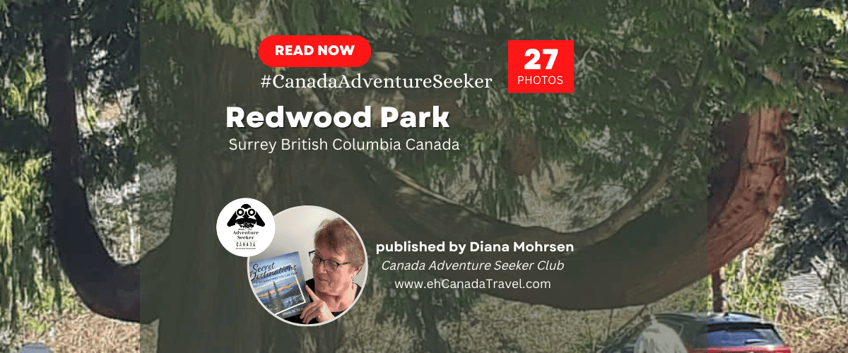 Redwood Park in Surrey Canada seems to pose a question simply by its existence. What are giant redwoods doing in the lower mainland of British Columbia? Although Surrey now has a population of nearly 500,000 people, for many years it was a farming community with a much smaller population. As a matter of fact there are still farms near Redwood Park. Therefore not a place where you would expect to find a grove of redwoods.