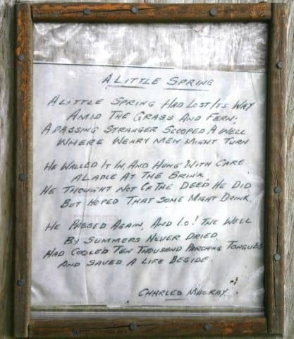 There is also a hand written poem, "A Little Spring", by Charles Mackay posted nearby on a tree that caught our eye.