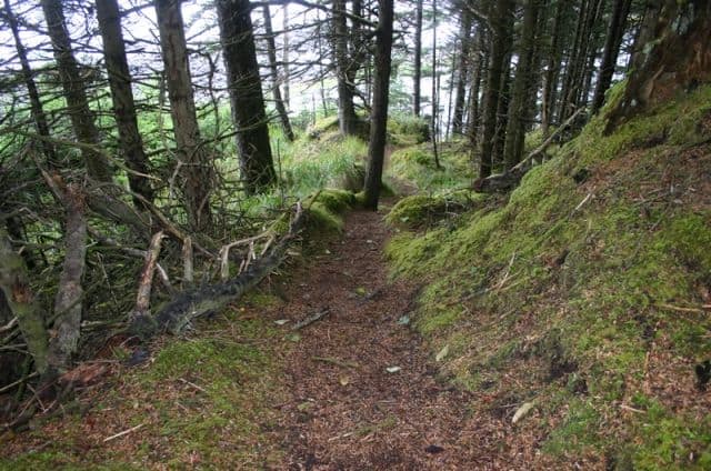 The trail is a one way trail so coming back down the hill you hiked up can get slippery and it is steep. Control your speed on your descent as roots are exposed and leaves and moss are slippery.