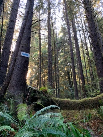 Gore Brook Trail is a moderate 1.6 kilometer hike through the dense forest behind the Village of Queen Charlotte.