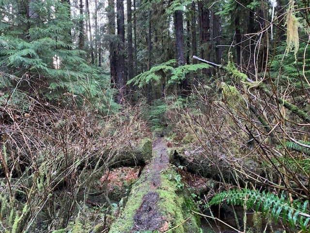 Because you are walking through the rainforest, much of this hike is muddy and wet, so proper footware is strongly advised. The early part of the trail is fairly easy, but it does get challenging further on. With creek crossings, roots and logs along the path, it can get slippery. In addition, sections of this trail runs along sidehill, making for some narrow pathways.