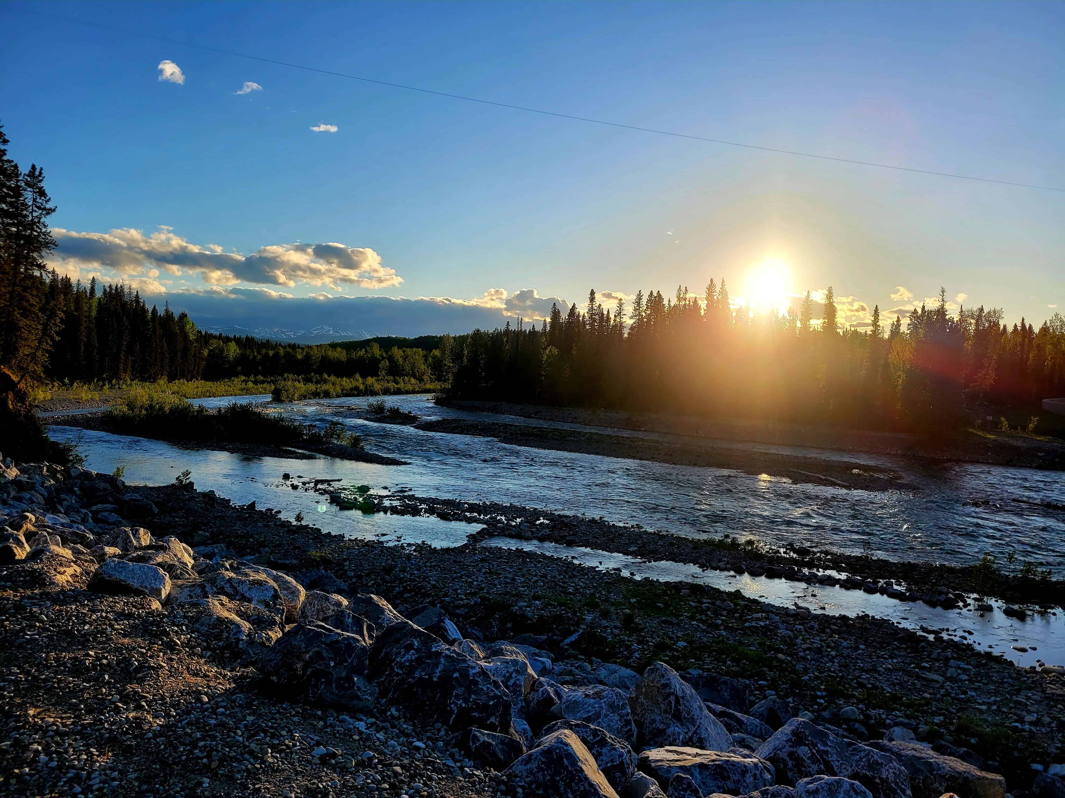 The days is quietly ending in Kananaskis Country with a beautiful sunset over the Elbow River.