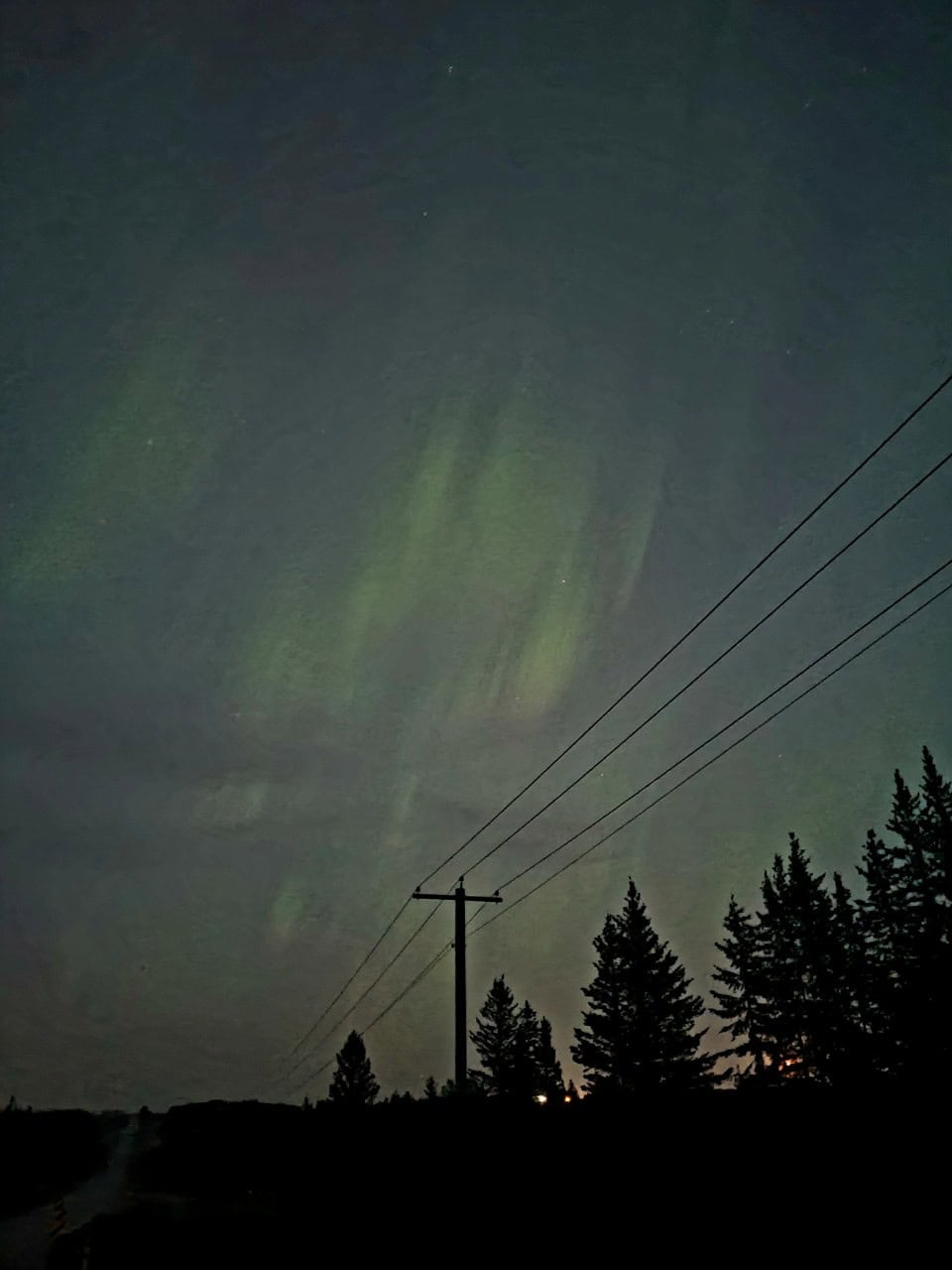 Highway 579 near Water Valley, Alberta was a perfect dark road to watch the Northern Lights on Sunday, August 11th, 2024.