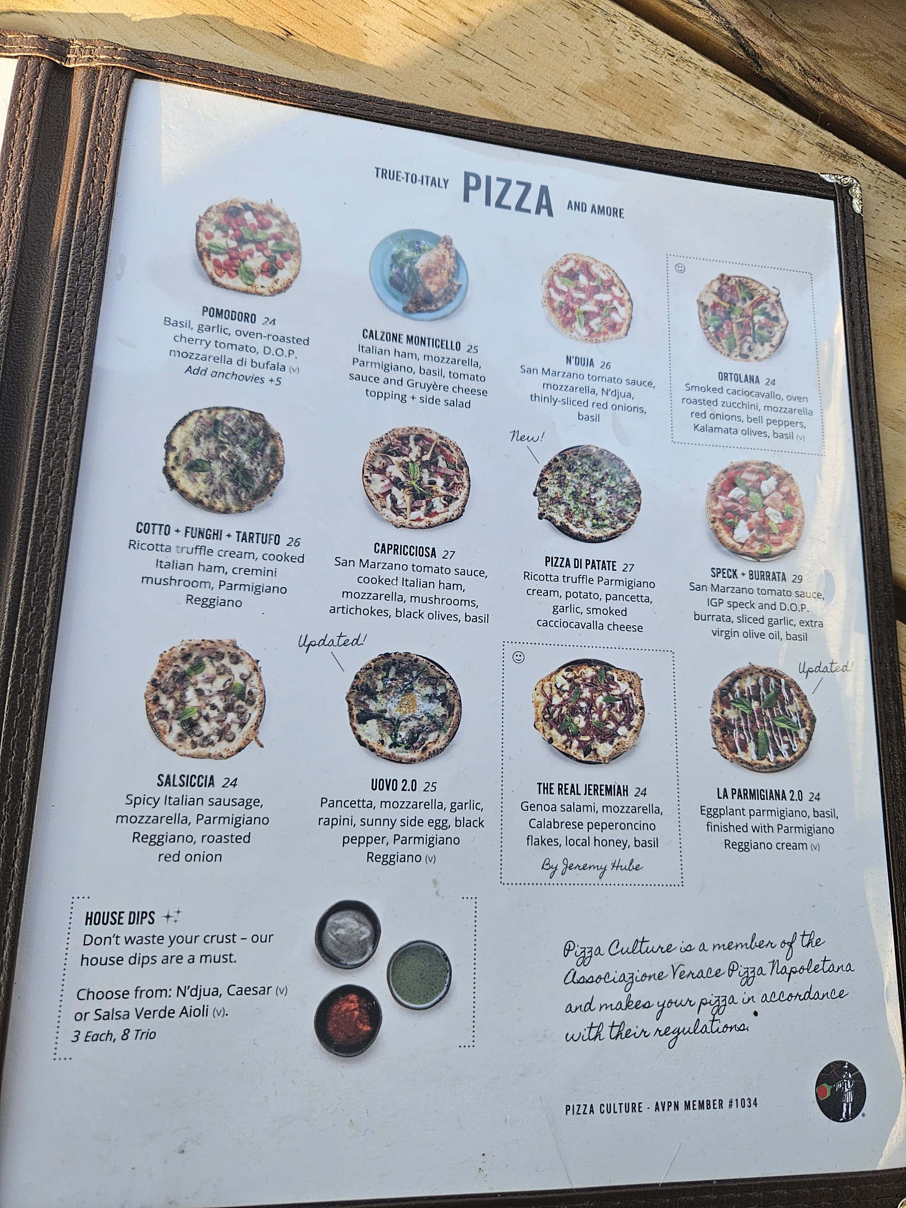 The Jeremiah pizza at Pizza Culture is called The Real Jeremiah featuring San Marzano tomato sauce, mozzarella cheese, Genoa Salami, basil, Calabrian chili flakes and local honey. Authentic and delicious!