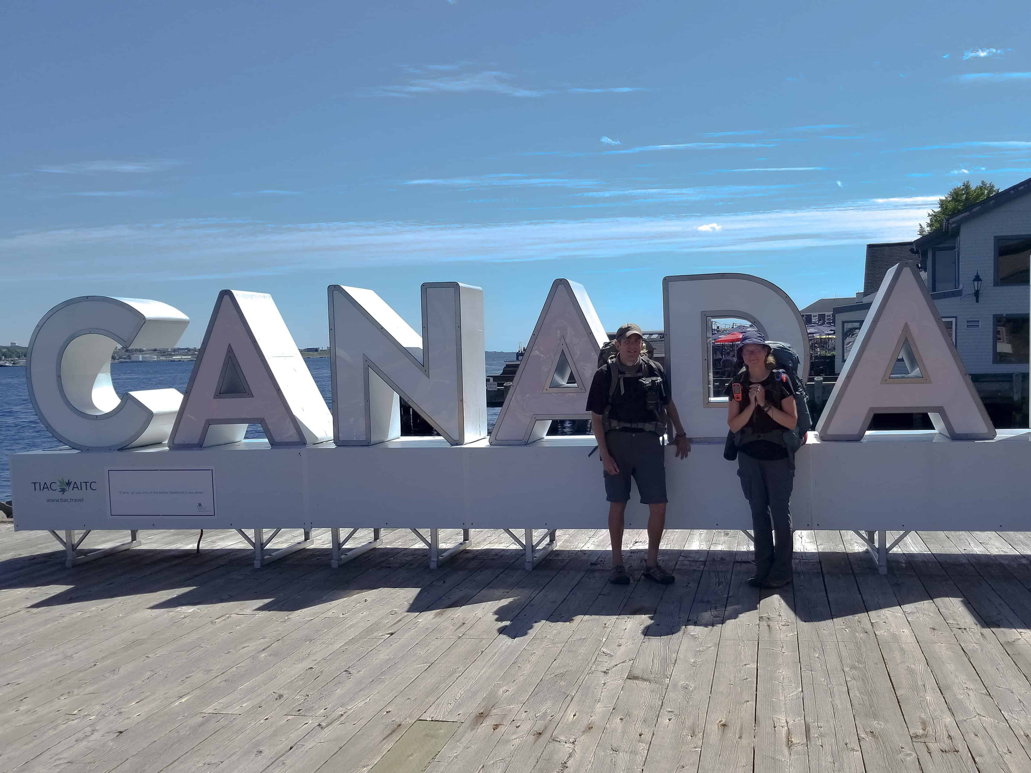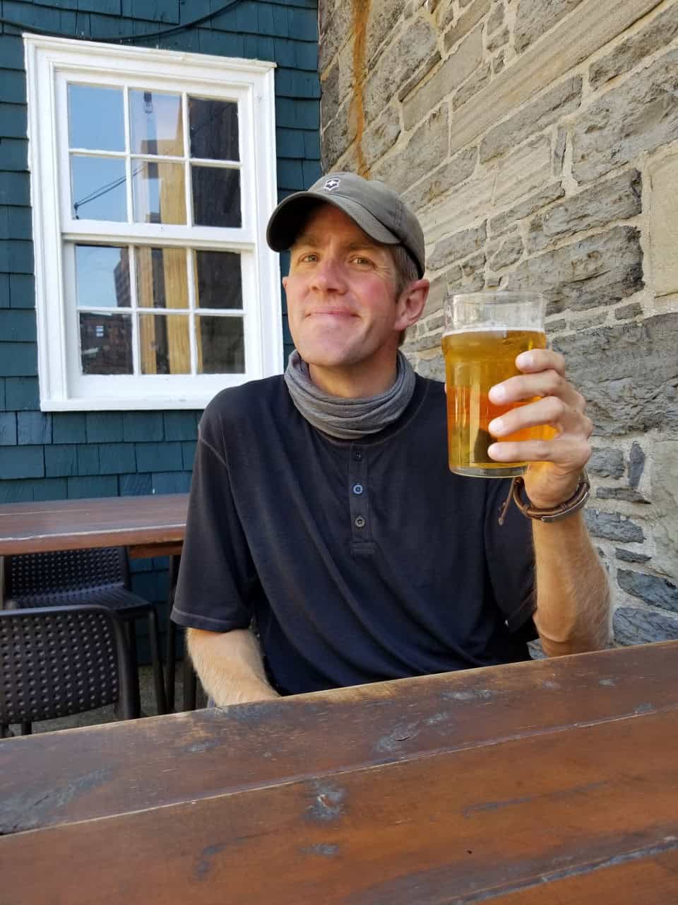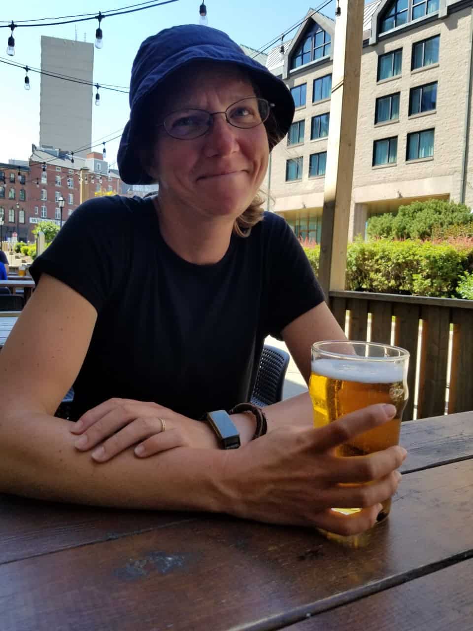 Enjoying a well-earned cold drink in Halifax, Nova Scotia, Canada after exploring the Halifax Citadel National Historic Site and celebrating completion of the second province on our cross-Canada hike.