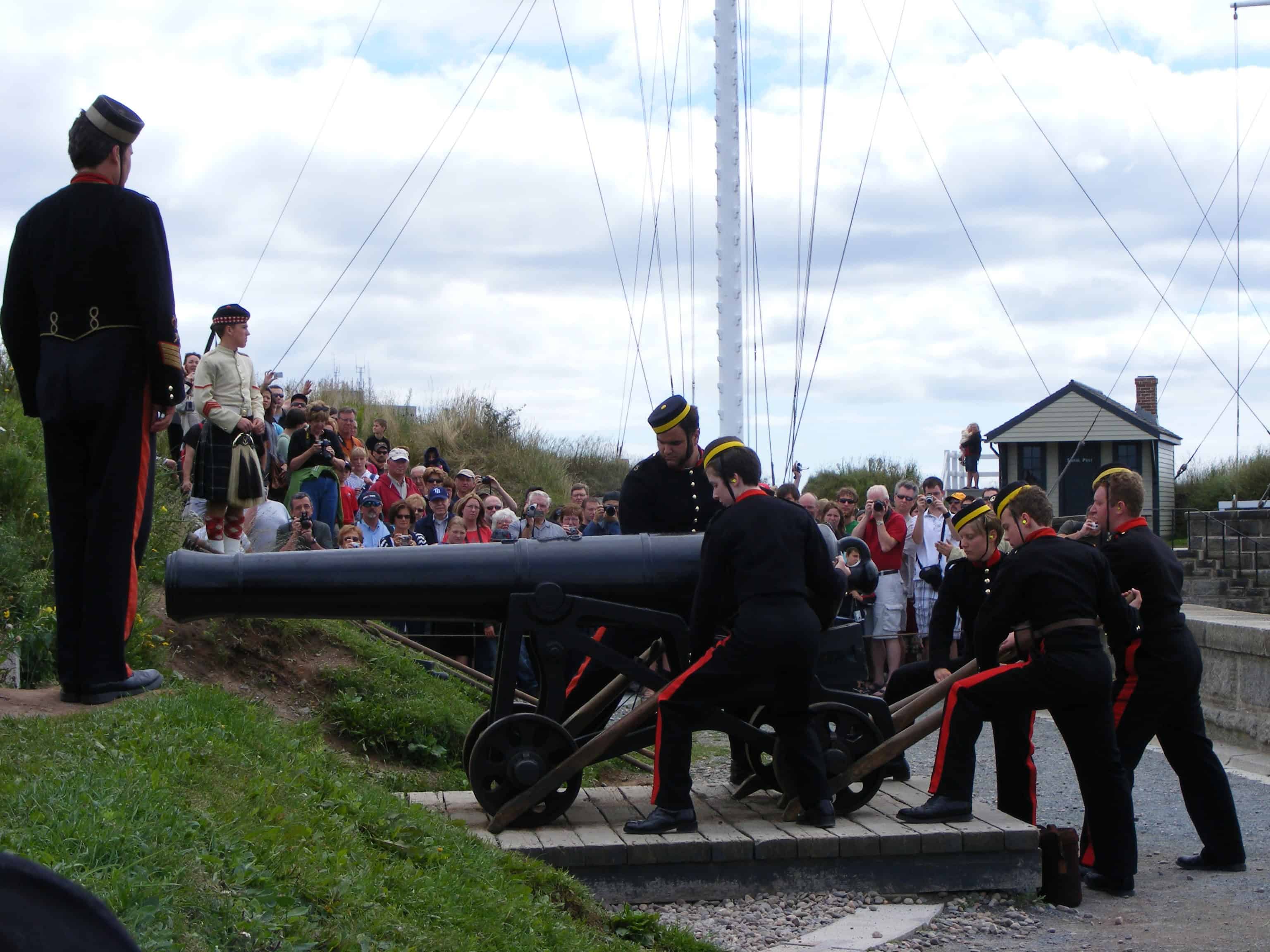 Re-enactors ceremoniously fire the Noon Gun at the Halifax Citadel National Historic Site in Halifax, Nova Scotia, Canada, showcasing Parks Canada’s commitment to preserving Atlantic Canada history.