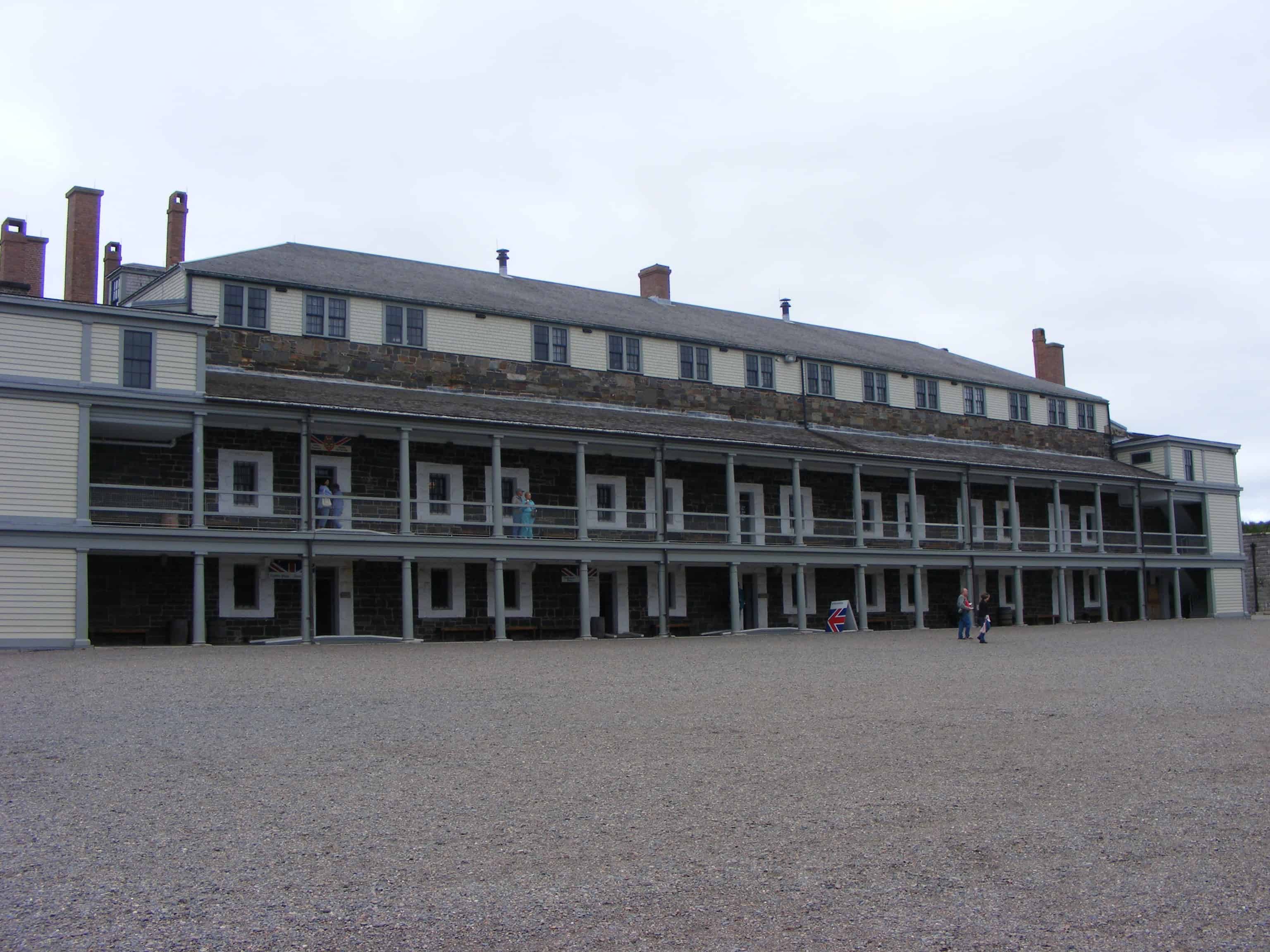 The internal courtyard and barracks of the star-shaped Halifax Citadel National Historic Site, once known as Fort George, showcase military life in Halifax, Nova Scotia, Canada, preserved by Parks Canada in Atlantic Canada.