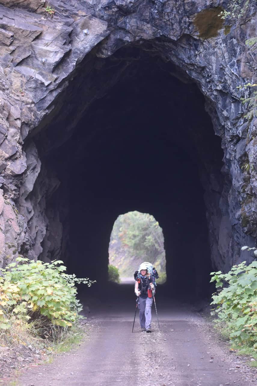 The Columbia and Western Rail Trail’s Bulldog Tunnel near Castlegar is one of North America’s longest railway tunnels, immersing hikers and cyclists in history along this iconic BC rail trail.
