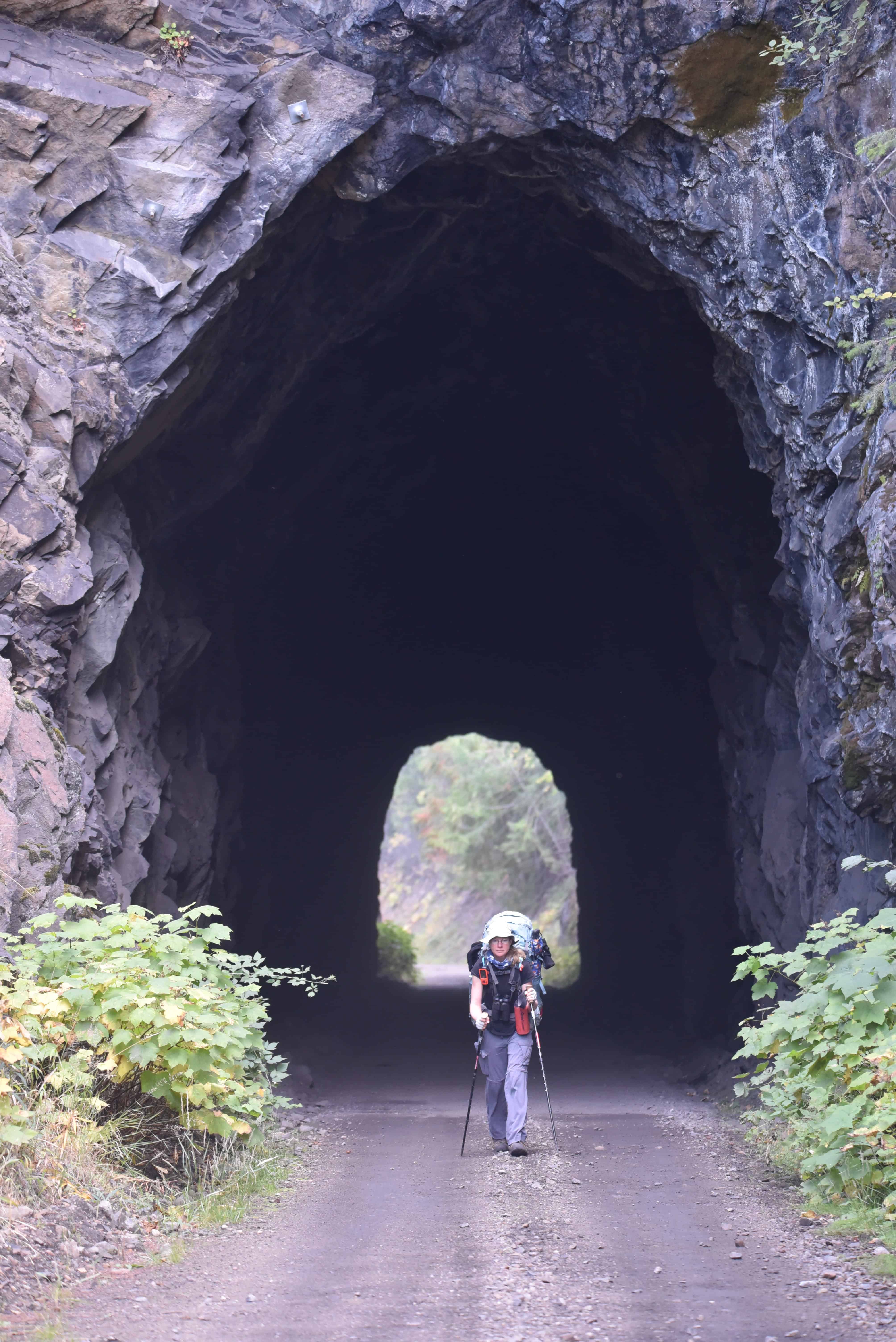 Experience the Columbia and Western Rail Trail’s Bulldog Tunnel. Curved in the middle and nearly one kilometre long, it's cold, wet, eerie inside is pitch dark and echoing. Headlamps guide visitors through this unforgettable section of British...