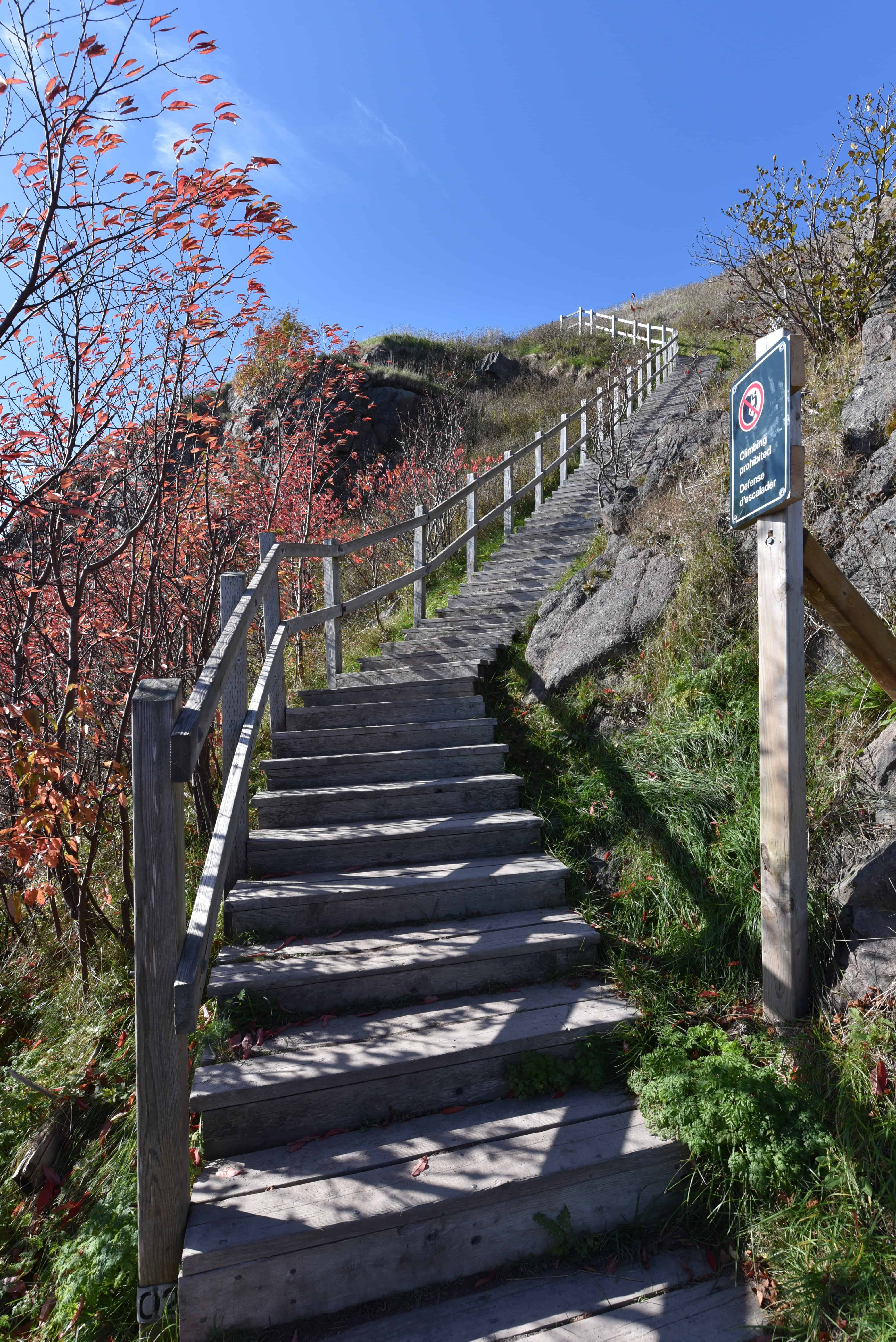 Navigate the long staircases through Ross' Valley on the North Head Trail, offering a challenging yet scenic route. The steep climb rewards hikers with stunning views of St. John's and the surrounding coastline in Newfoundland.