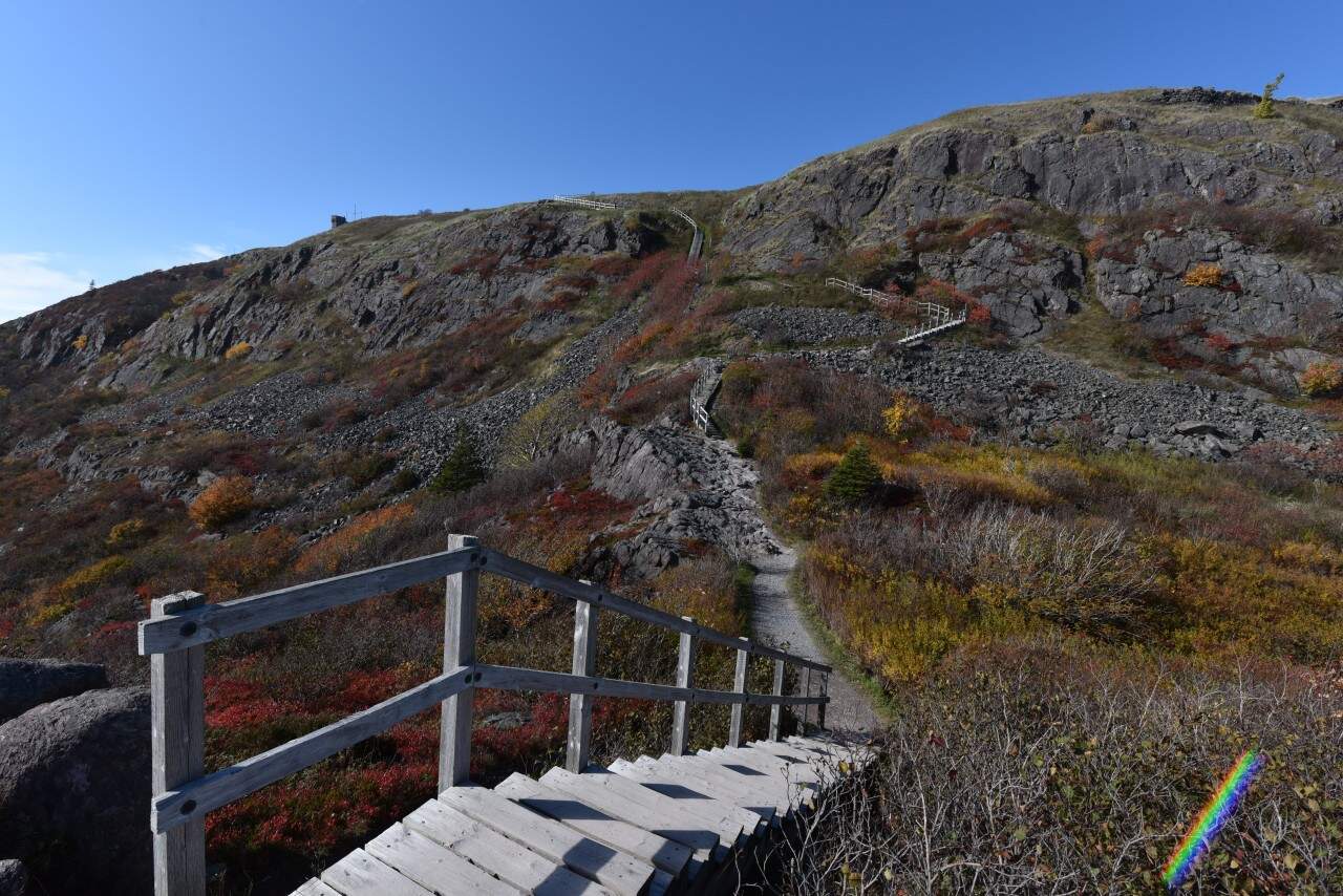 The North Head Trail begins at the end of Outer Battery Road, leading you along the narrows and into Ross’ Valley, a stunning "hanging valley" carved out by glaciers during the last Ice Age. As you ascend the steep and rugged trail, you'll pass by military remnants and landmarks tied to Signal Hill’s historic past. The trail culminates with a stunning view from Cabot Tower, offering panoramic sights of St. John’s and the Atlantic coastline. Hiking this trail isn’t just about the natural scenery—it’s also a journey through history, allowing you to experience the rich cultural heritage of Newfoundland.
