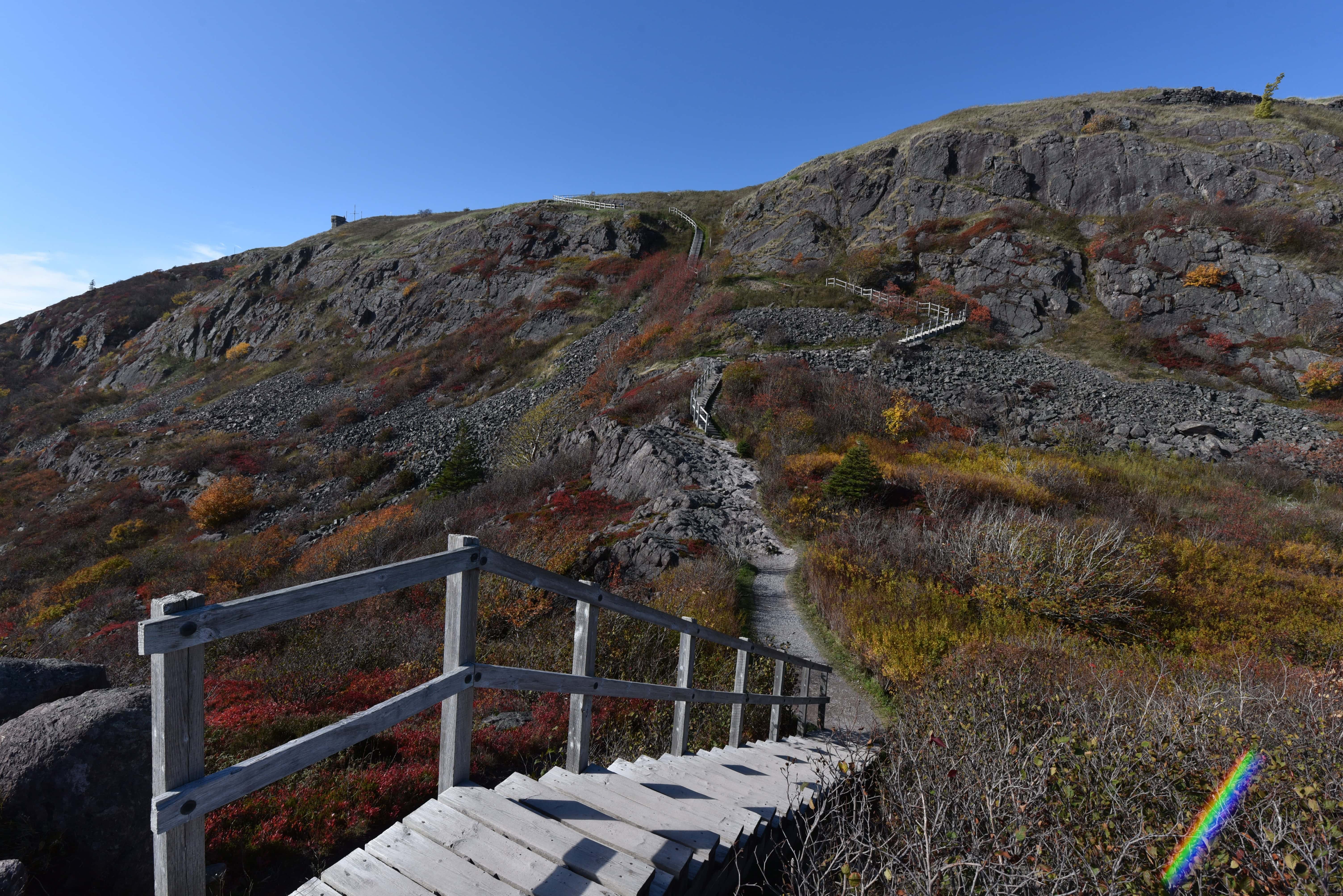 Experience the stunning fall foliage along the North Head Trail in St. John's. The vibrant autumn colours provide a scenic backdrop as you hike toward Cabot Tower and the Atlantic coastline.