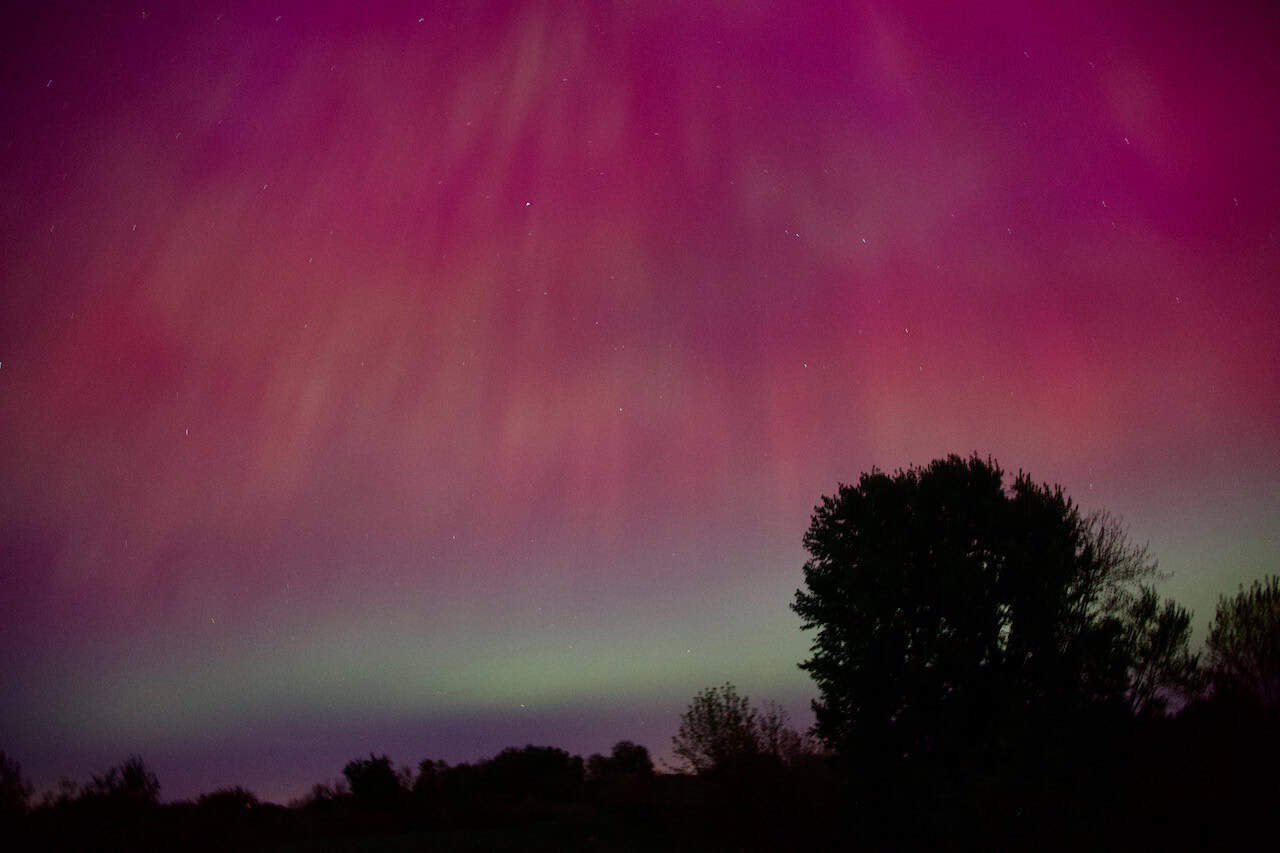 Northern lights view along the trees at Hullett Provincial Wildlife Area in Clinton, Ontario. Photo Credit: Brent Ferrie