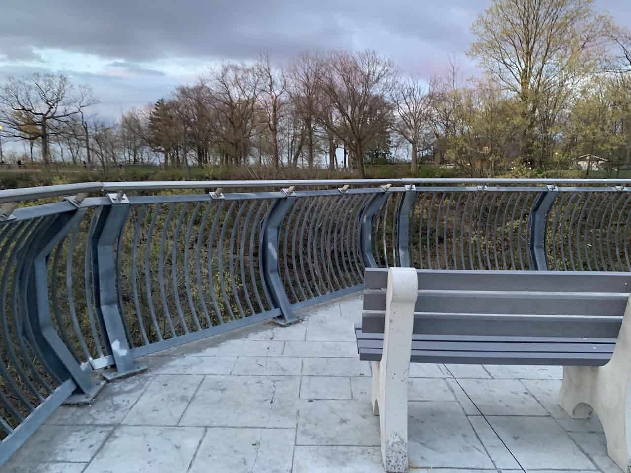 The fenced railing at Cliffview Falls Park provides visitors with a safe space to view Cliffview Falls along the Robert MacLaren Side Trail in Hamilton, Ontario.