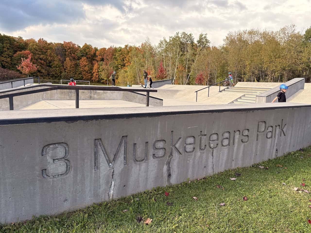 Throughout the park, skaters can make their way through a long street course and a bowl shaped like the number “3.” Additionally, updated seating areas and improved visibility have been created to support spectators. Many of the park’s elements are designed with both skateboarding and scootering in mind, ensuring that every visitor finds terrain suited to their style. 3 Musketears offers variety and character and is a worthwhile stop in Acton, Ontario, Canada.