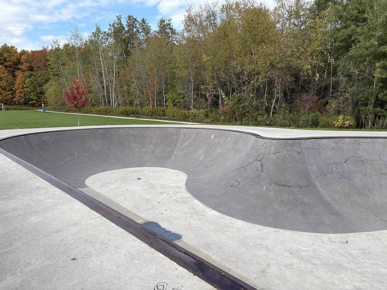 The green space around the 3 Musketears Skate Park provides the perfect spot for field sports nearby in Acton, Ontario, Canada.