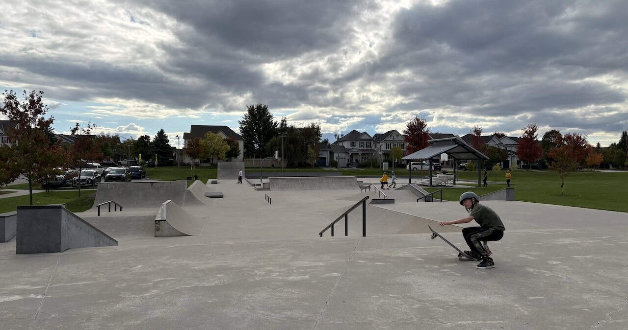 Skaters of all ages enjoy the features offered at the 3 Musketears Skatepark in Acton, Ontario, Canada.