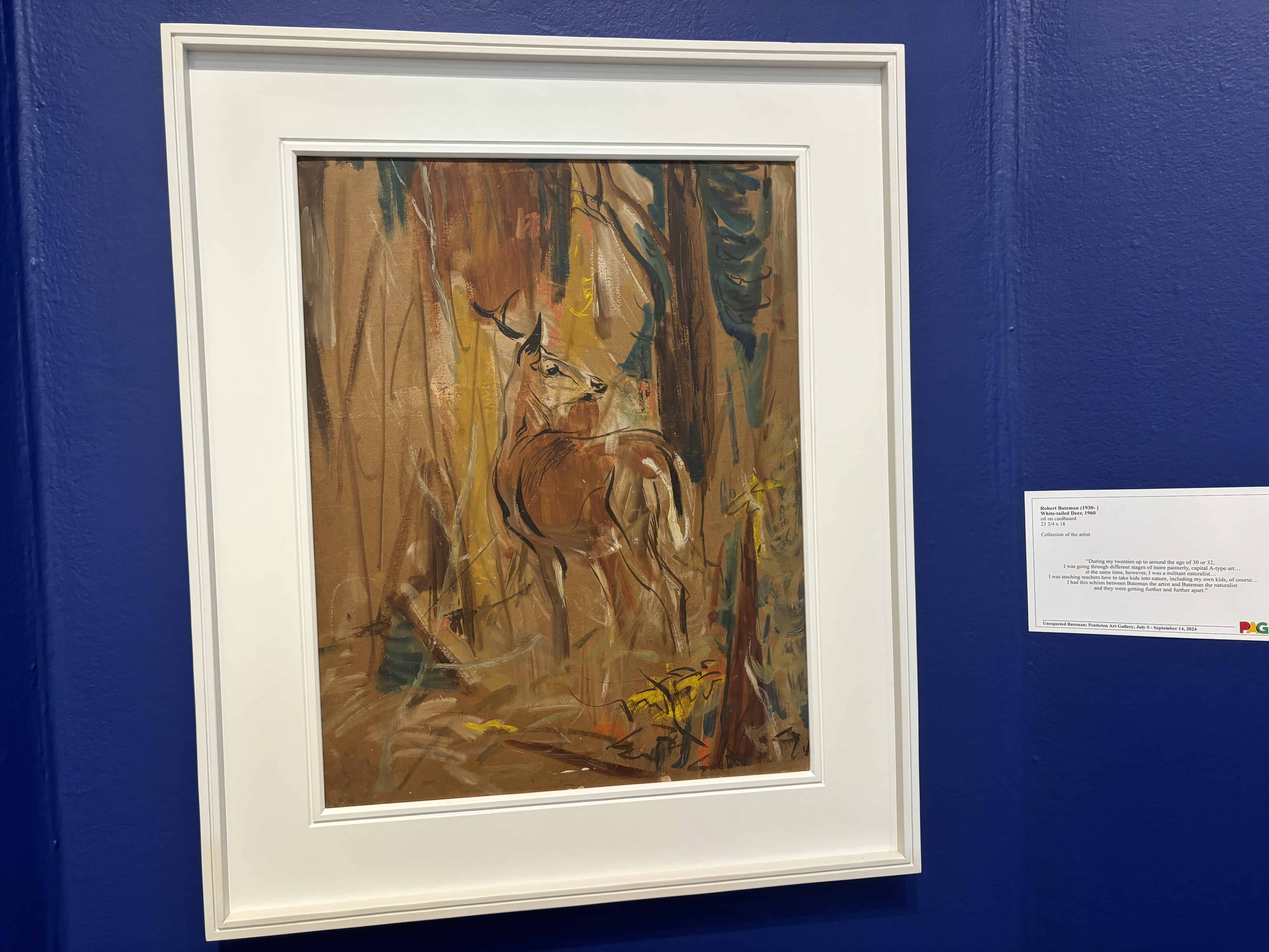 This 1960 painting, White-tailed deer, was done with oil on cardboard. Quite different in style than his more recent paintings.