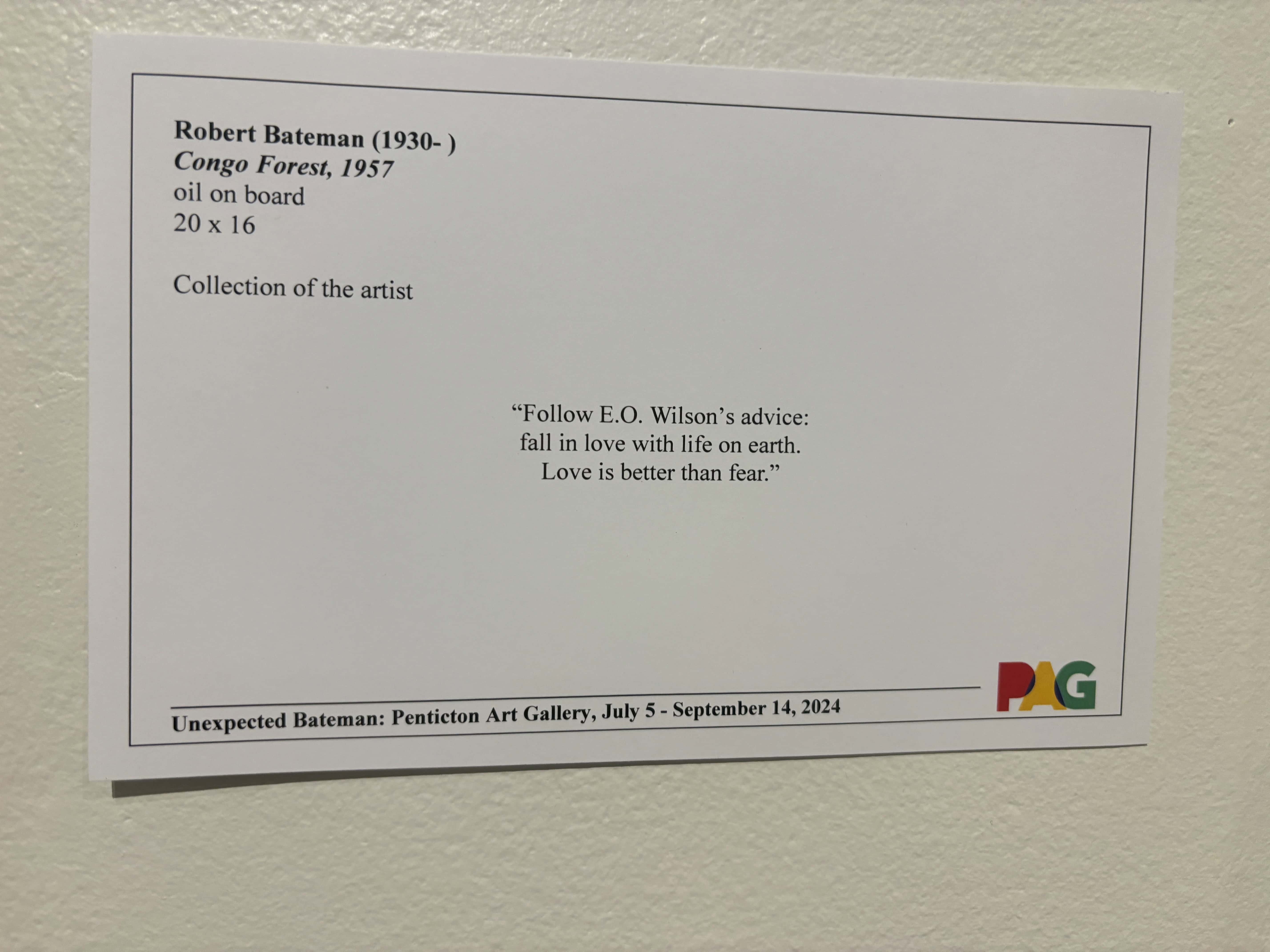 Cards accompanied most of the pieces in the Robert Bateman Exhibit. They might tell about the subject of the painting, why it was painted, or something else about why the artist chose that subject.