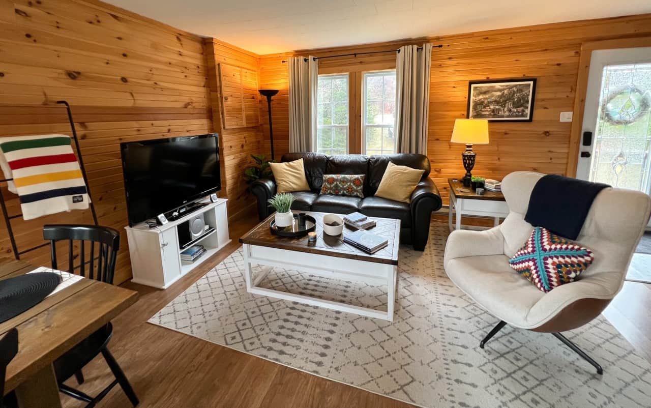 I loved the open concept layout of the cabin in Brigus South NL Canada. It was the perfect layout for socializing with family and friends. Stylish decor accents made the vacation accommodation comfortable and cozy.