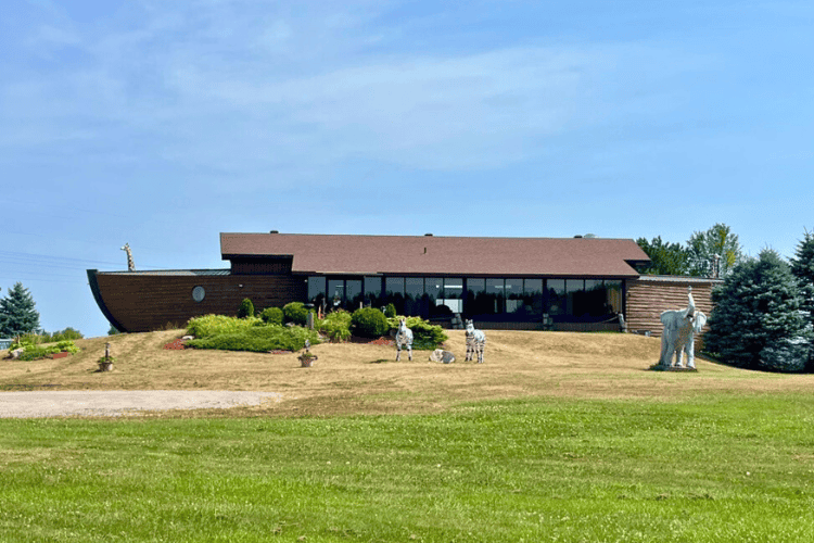 Interestingly, behind the large sign indicating we have arrived, there was a large Noah-style ark. We had to pull over and explore!