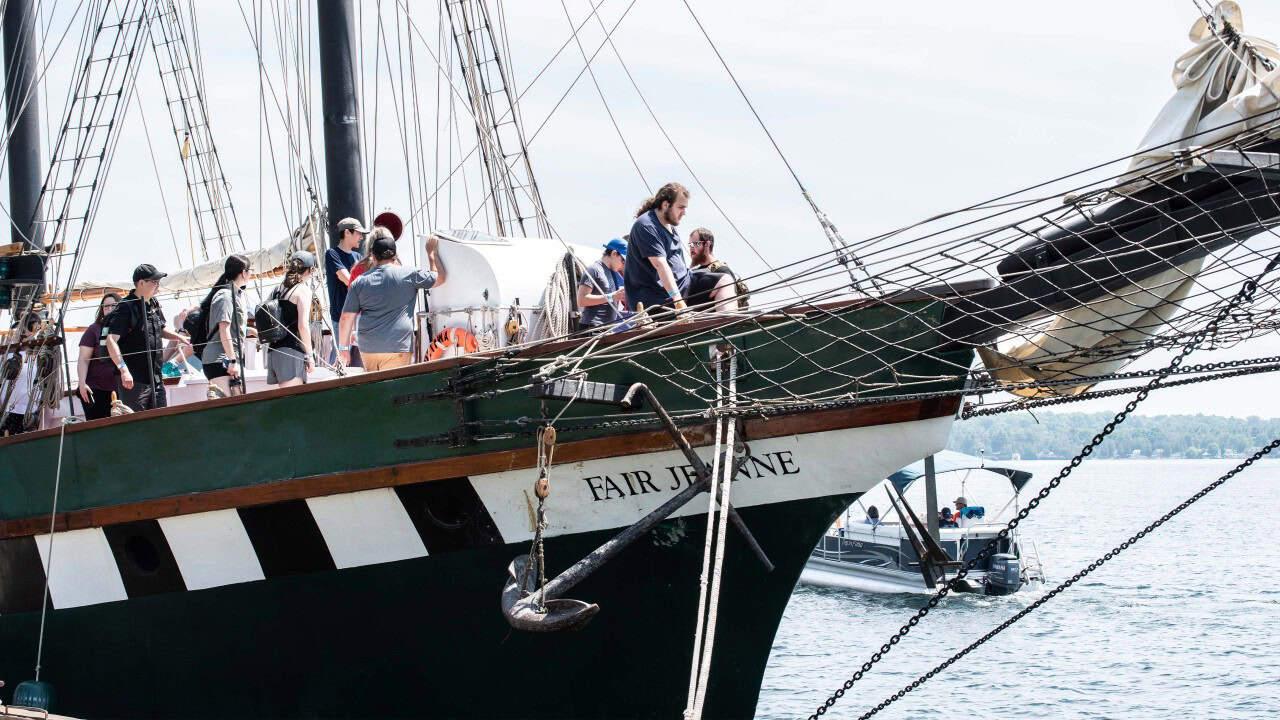 The Fair Jeanne welcoming visitors abord the docked ship to take a look around.