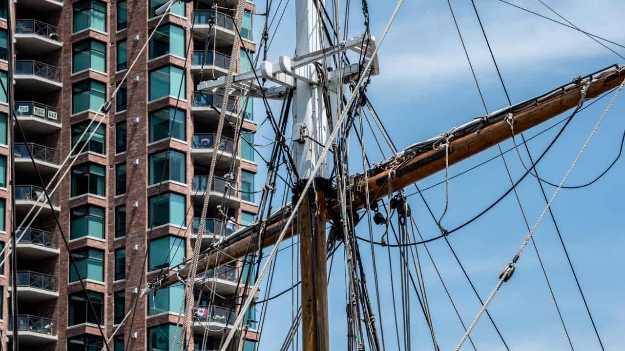 The crew of the Empire Sandy raising the sails for our sunset cruise in the St Lawrence River during the Brockville tallships festival
