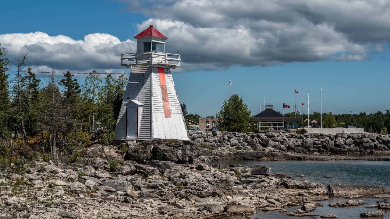 South Baymouth lighthouse houses the rocky shores of Lake Huron and Georgian Bay.