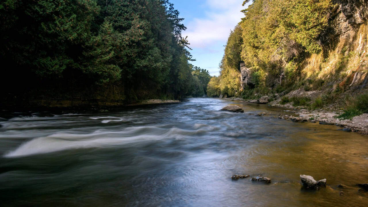 The Elora Gorge Conservation Area in Ontario, Canada, is one of the most beautiful and spectacular natural areas in the Grand River valley. Nestled along the Grand River, this Conservation Area features dramatic 22-metre high limestone cliffs through which the river rushes, creating rapids, panoramic views, and unforgettable outdoor adventures.