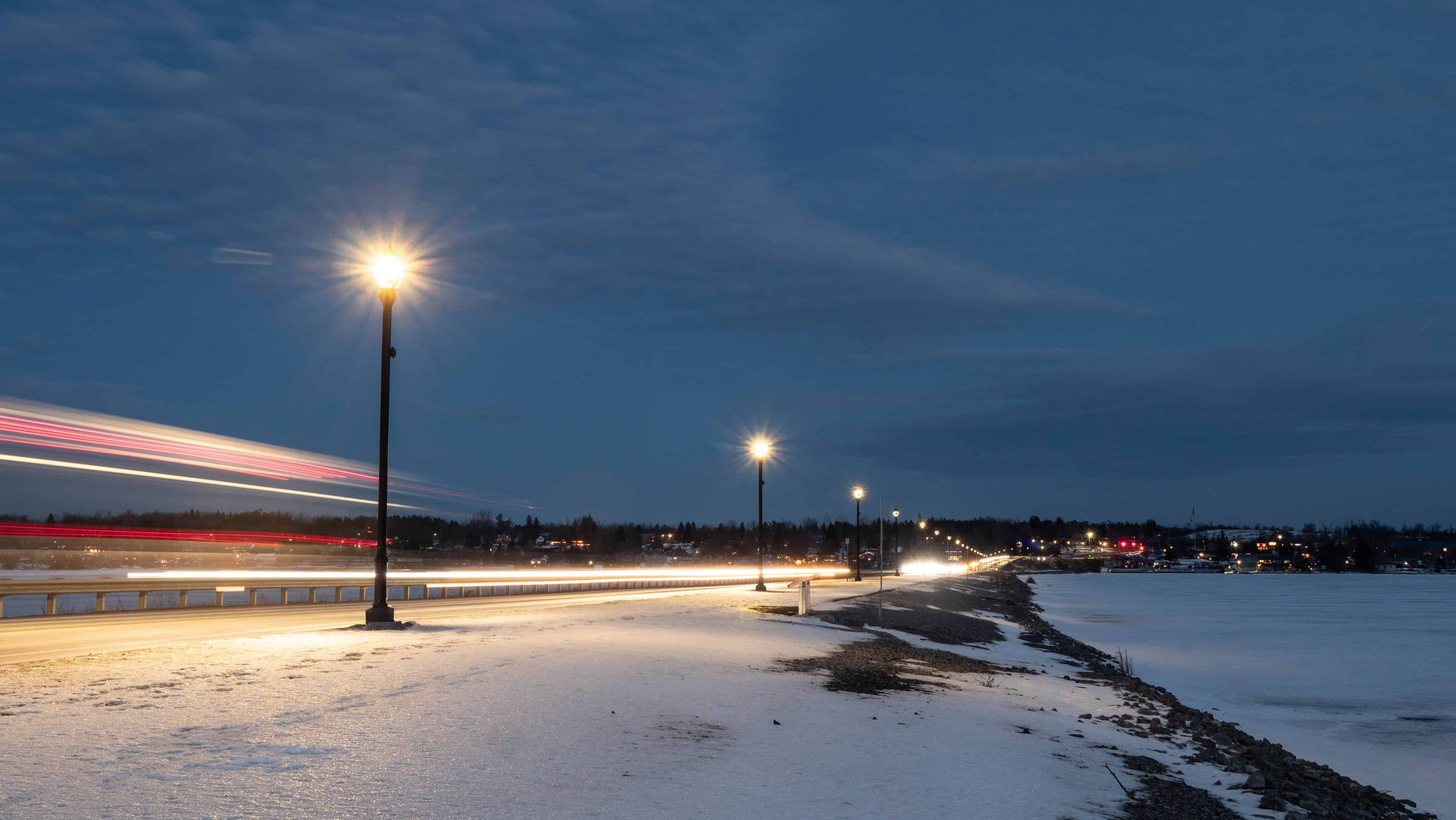 Along the pedestrian path, new signage has been installed to highlight the rich history of the Bridgenorth Causeway, the development of the local highway system, and the role this crossing has played in connecting communities throughout the Peterborough region. These interpretive signs provide valuable historical context, helping visitors better understand the importance of the causeway to Bridgenorth, Chemong Lake, and the surrounding area. During winter, the contrast of snow, ice, open water, and passing traffic creates striking visual scenes, making the location especially appealing for photography.