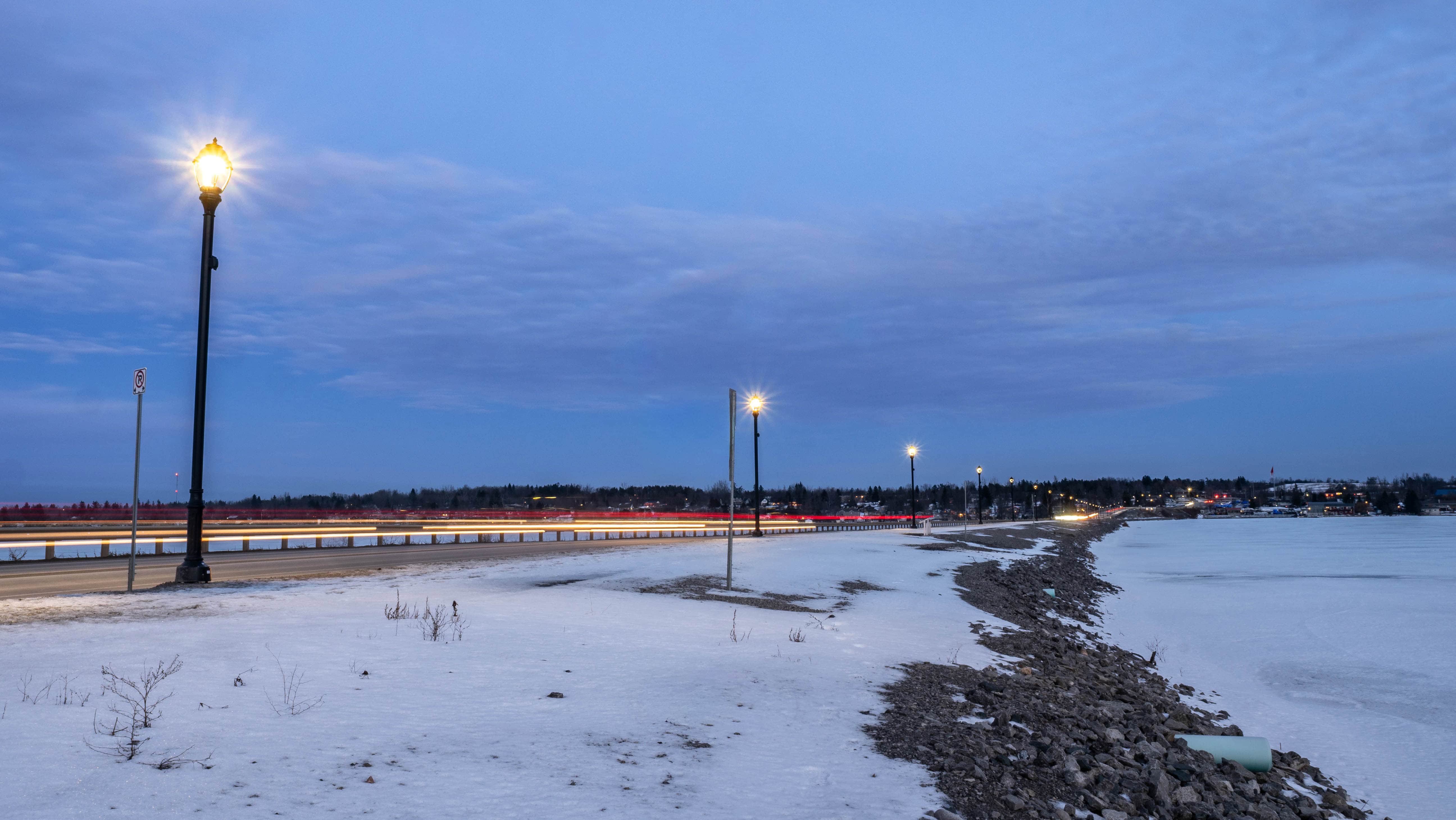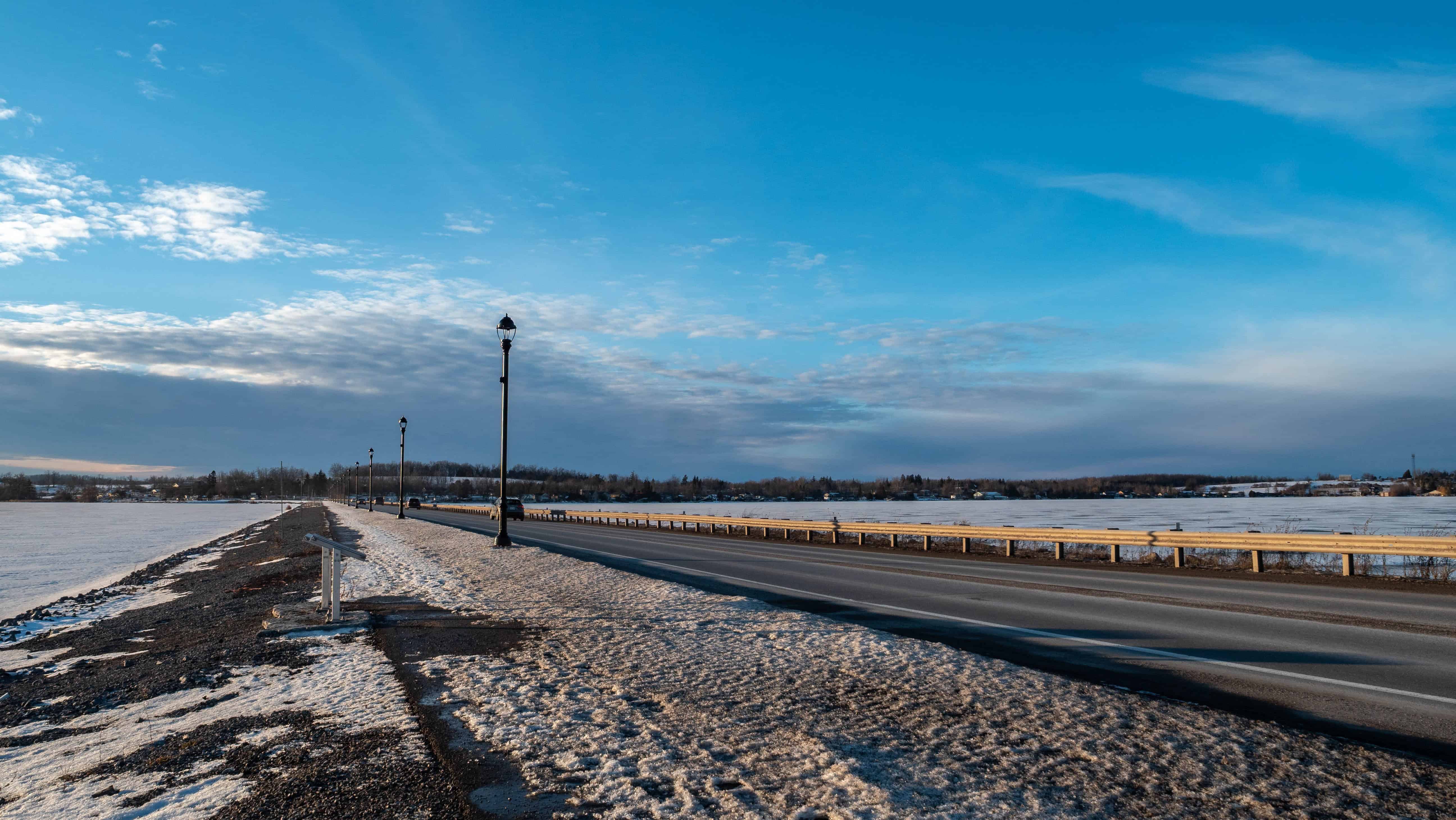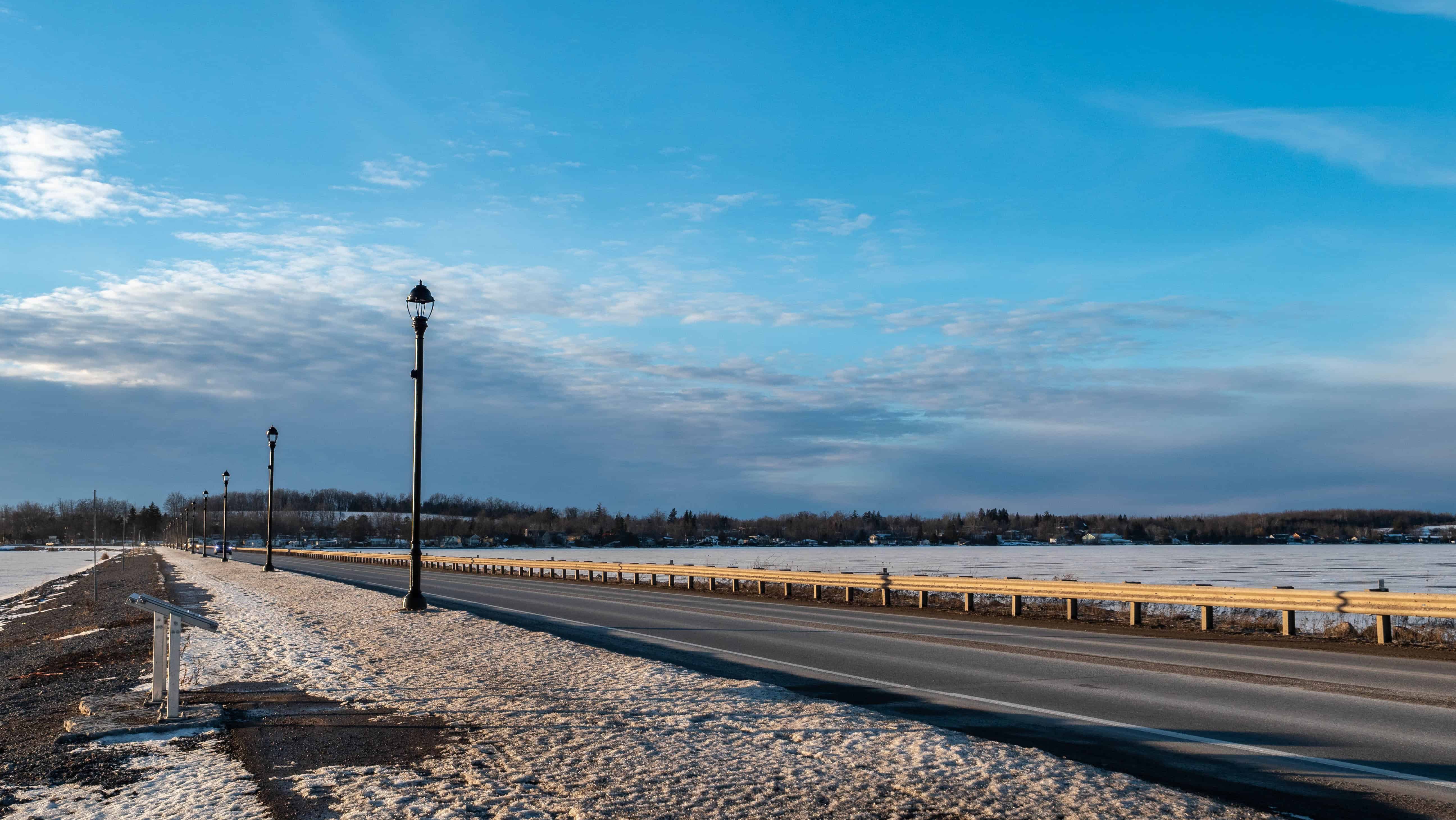 On a cold winter afternoon, I visited the newly reconstructed Bridgenorth Causeway, officially known as the James A. Gifford Causeway, located in Bridgenorth, Ontario, just north of the City of Peterborough. This important transportation link spans the water between Bridgenorth and Ennismore, crossing the edge of Chemong Lake, and has recently undergone significant construction to improve safety, accessibility, and the overall experience for both drivers and pedestrians. The reconstruction of the James A Gifford Causeway now features a dedicated walking path, making it easier for visitors and locals to safely stop, explore, and appreciate the surrounding landscape.