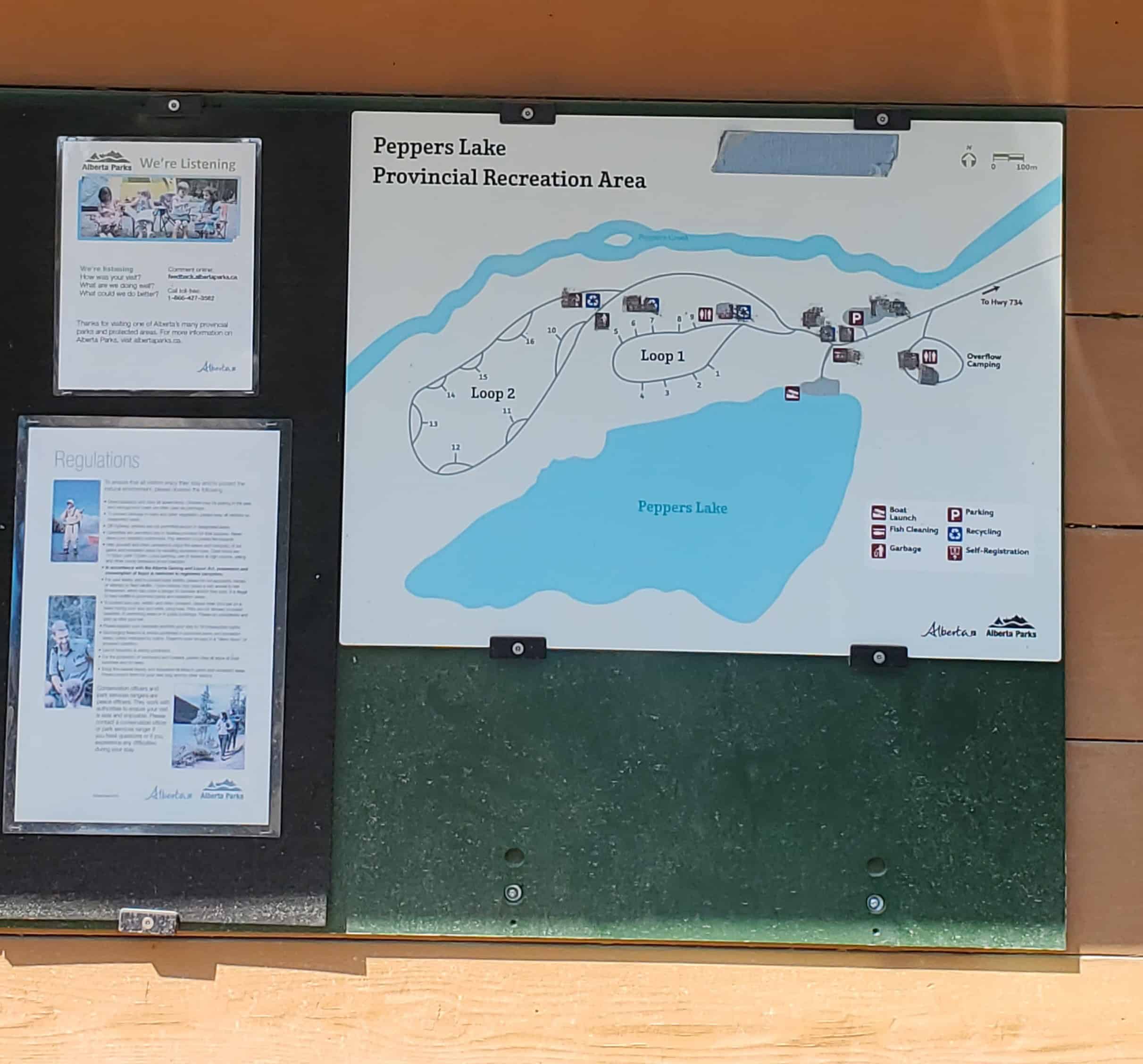 Peppers Lake is part of the North Saskatchewan River Watershed. This sign gives a bit of information about the water source and where it heads off to.