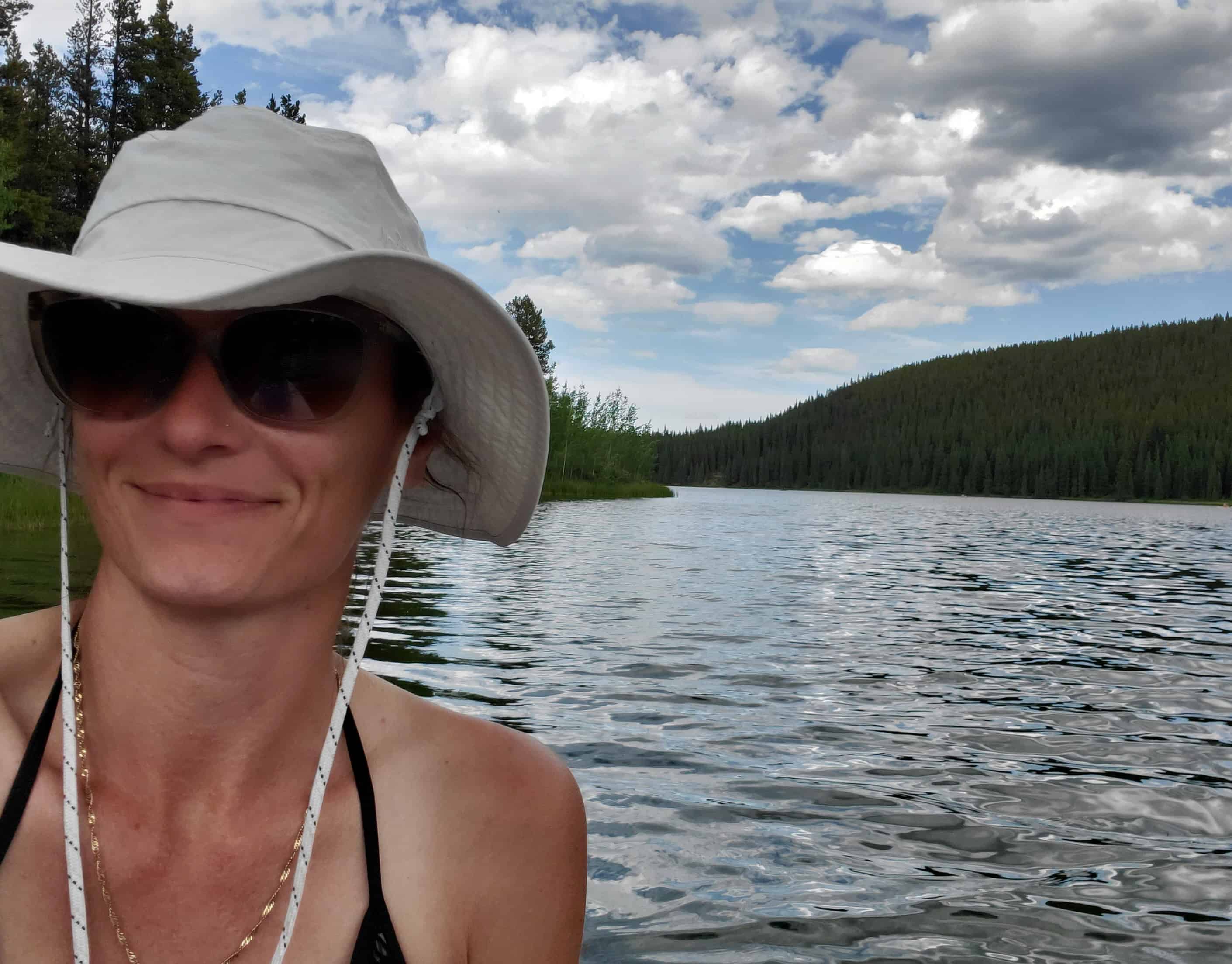 Sitting in the centre of this small lake, enjoying the surrounding natural beauty of Alberta's landscape from my paddleboard.