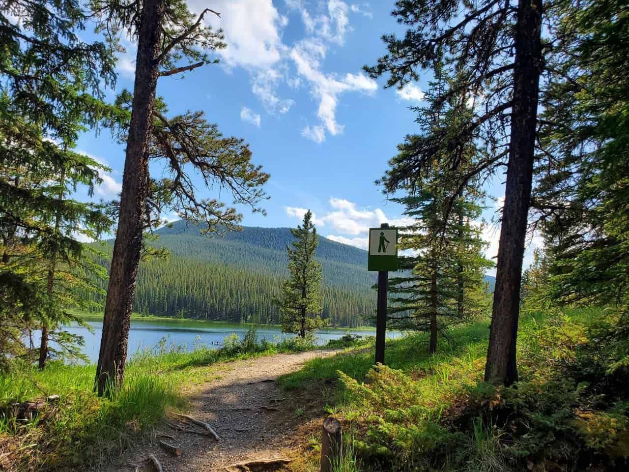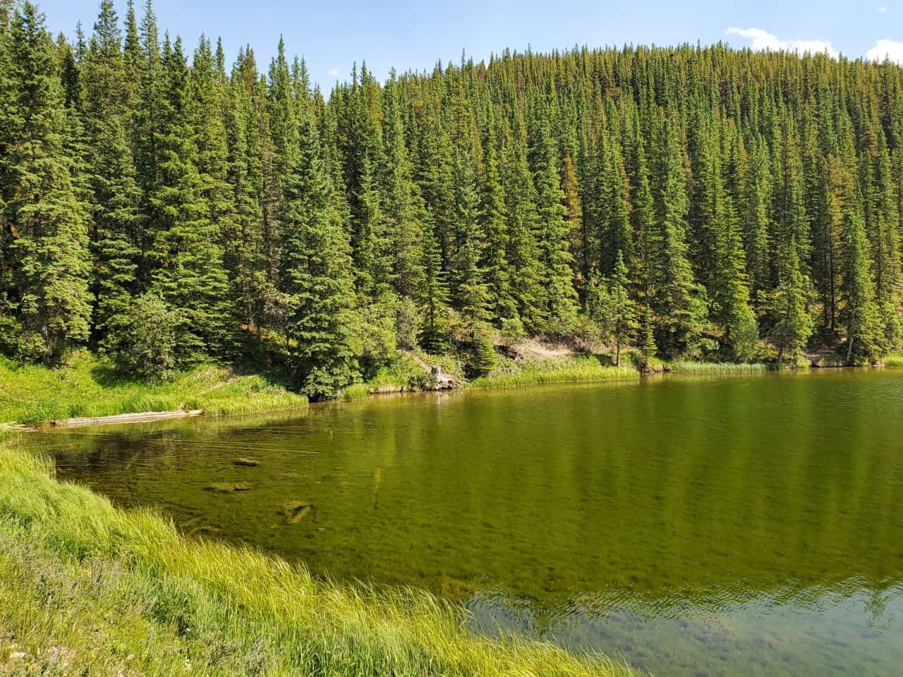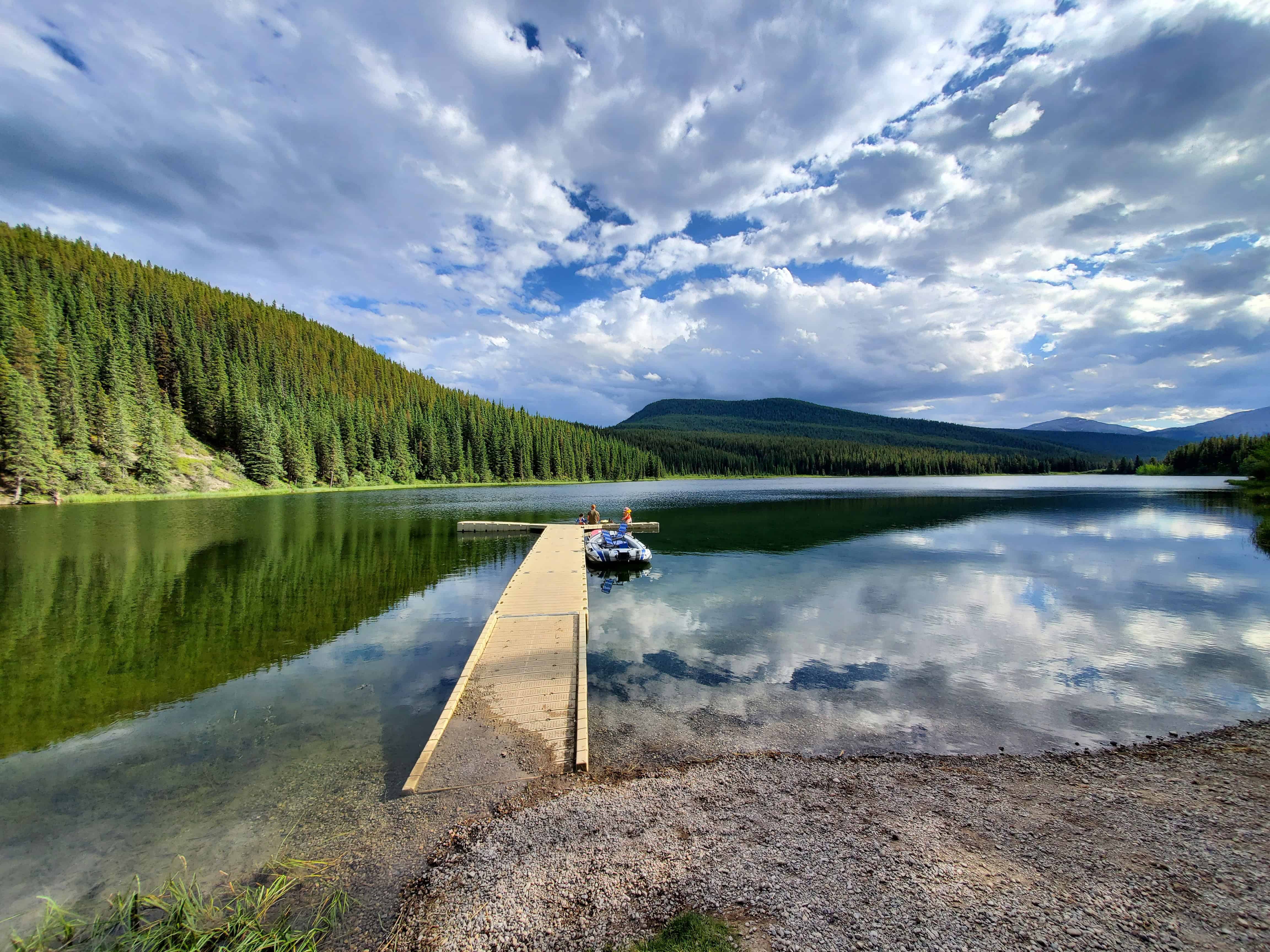 Peppers Lake is gorgeous, nestled in the trees with mountain views peeking out in the distance. The water is clean and clear, with a cool green hue. It is also an enjoyable temperature for swimming! A rare thing in Alberta.
