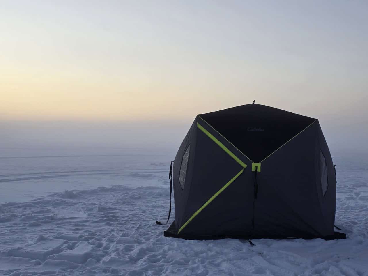 It's always a bonus when the weather allows you to fish outside of the ice fishing tent. Wind is about the only thing that can shut me down and make me hide. Luckily it was a perfectly still, calm evening. Chilly, but manageable outside.