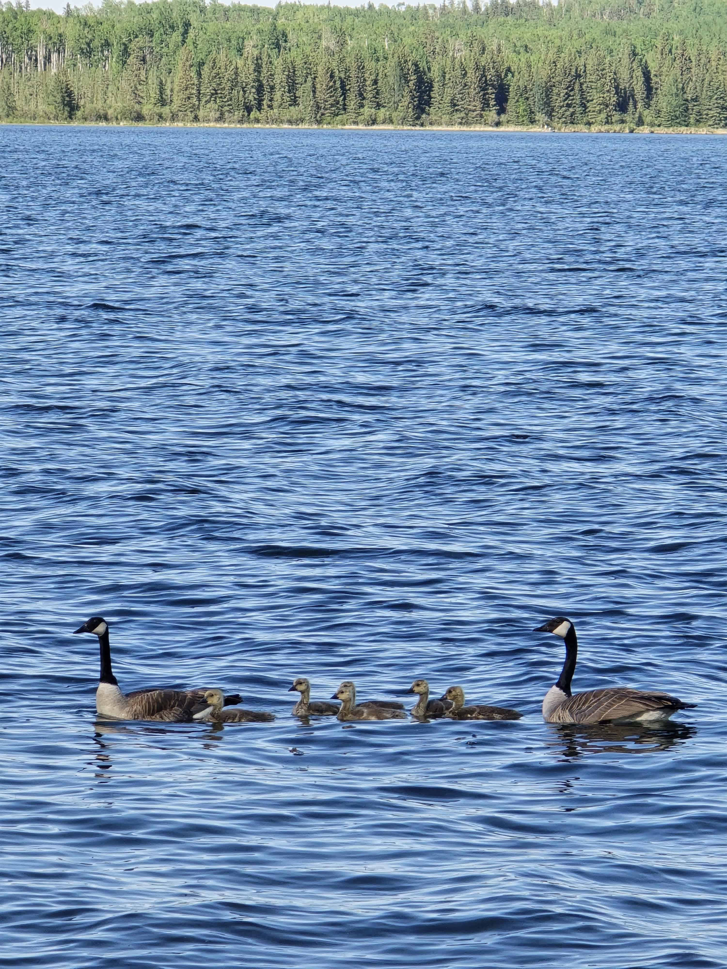 A new little family of Canada Geese swimming in Cow Lake
