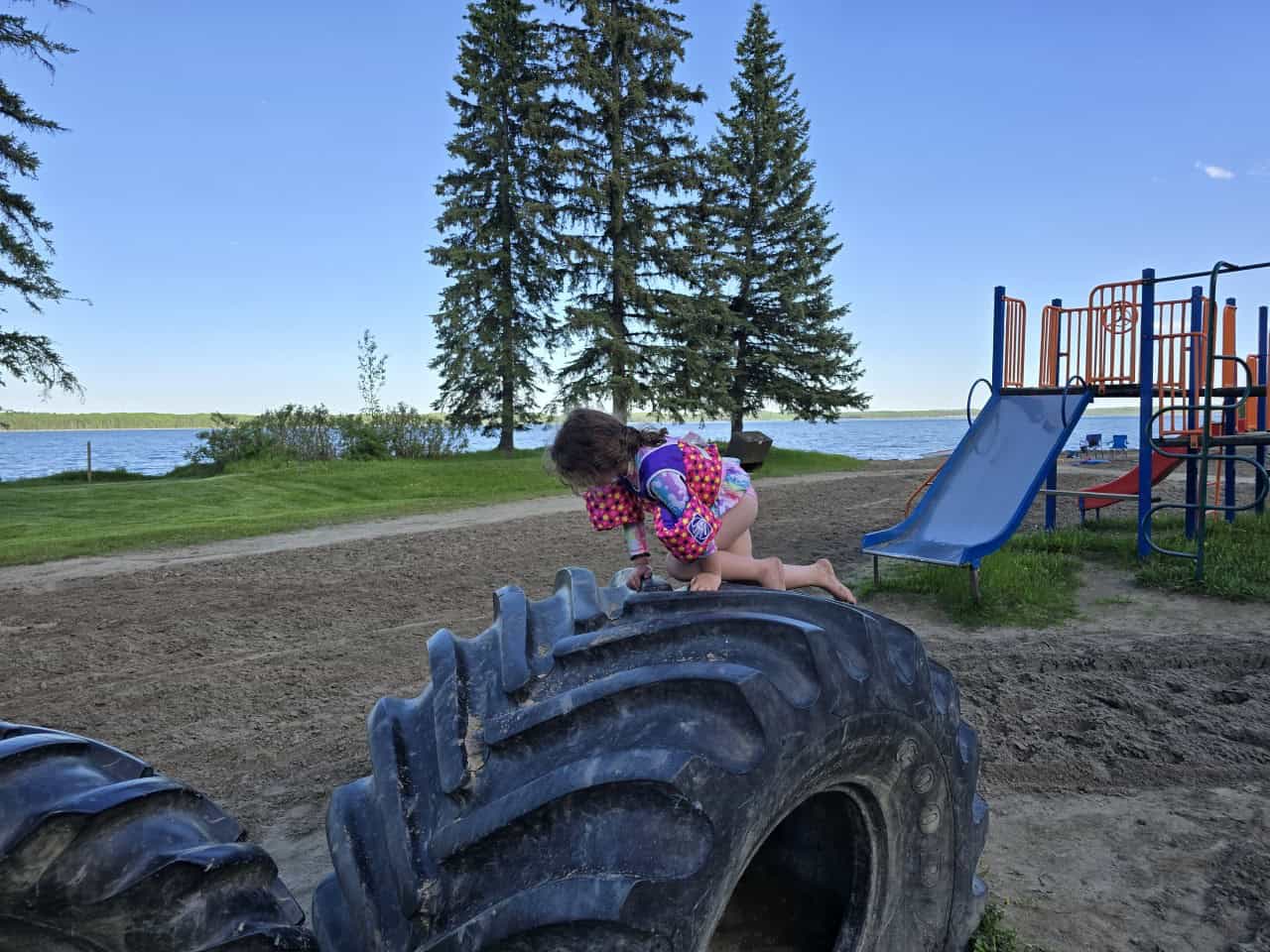 There are 2 different play areas at the Cow Lake Campground. One by the beach and one up by the office