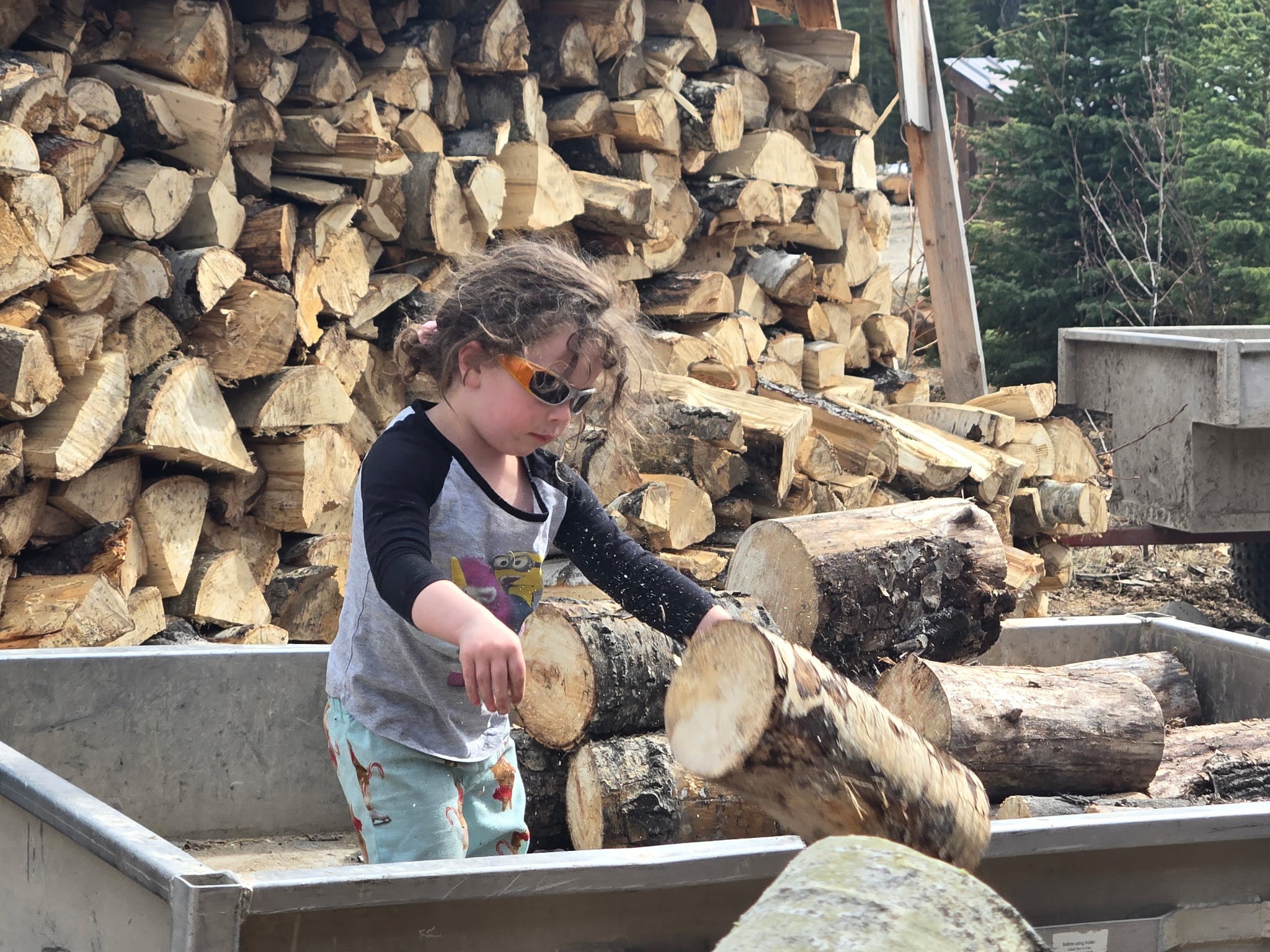 Clearwater County is a large logging area. You can pick up your wood cutting permits online to stock up for those cold evenings or fun summer campfires. Little Seeker loves collecting wood for campfires!