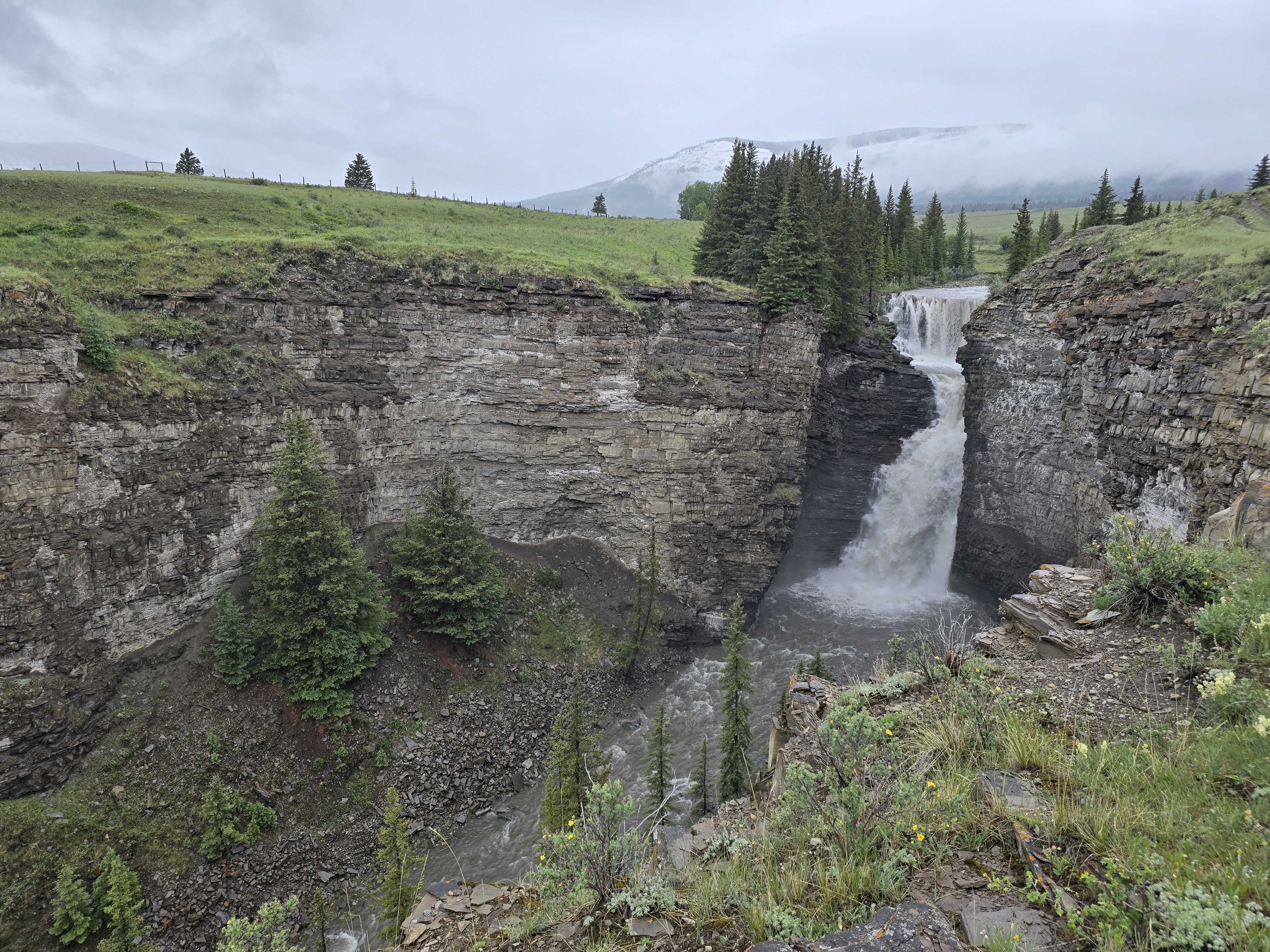 Bighorn Falls is one of the scenic waterfalls found in Clearwater County. Late spring is the best time to visit as snowmelt from the Rocky Mountains sends water surging through the canyon.