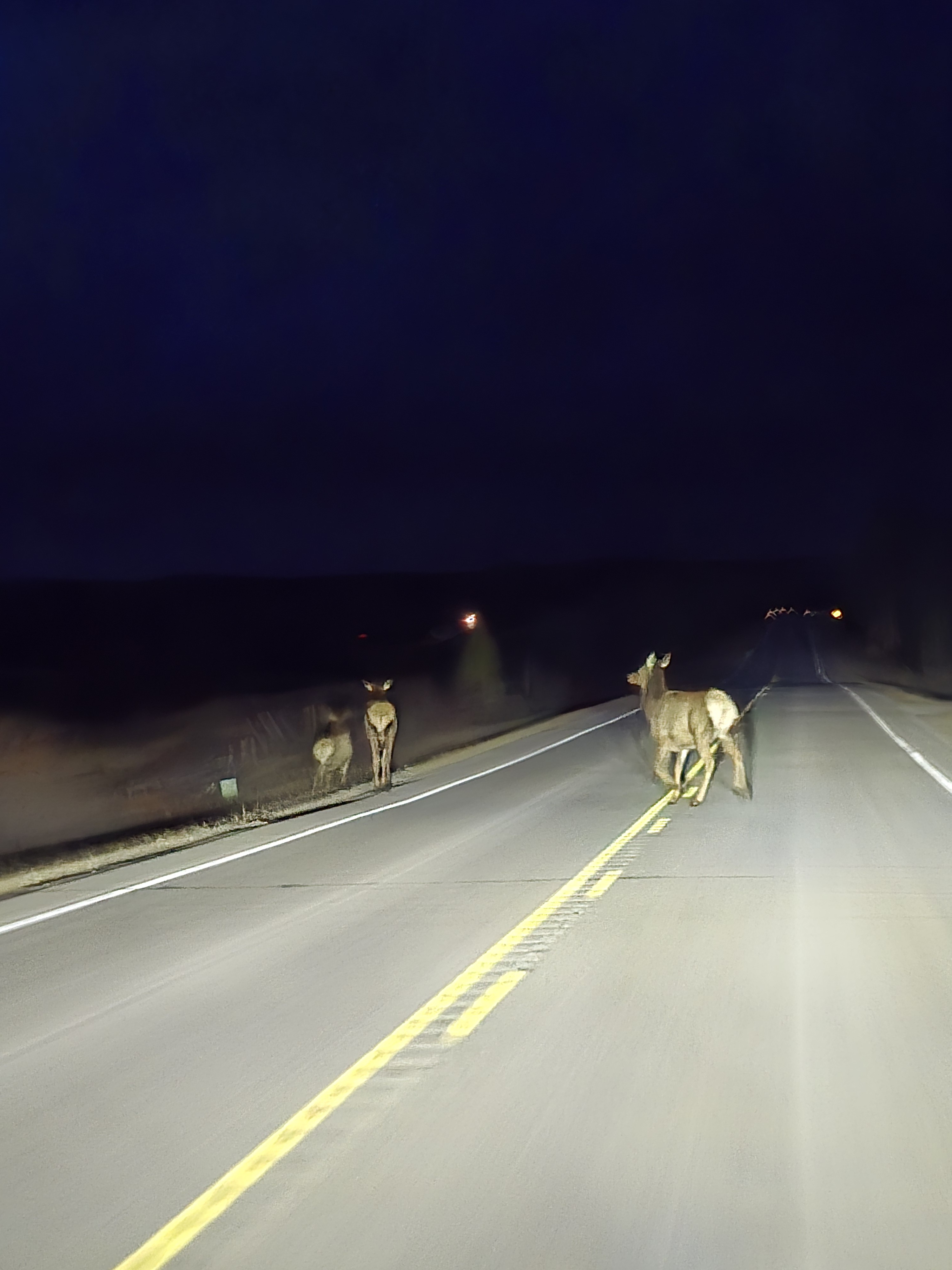 Wildlife encounters are common on quiet backroads in central Alberta. Elk are often spotted crossing roads at dusk and after dark. Drive safely