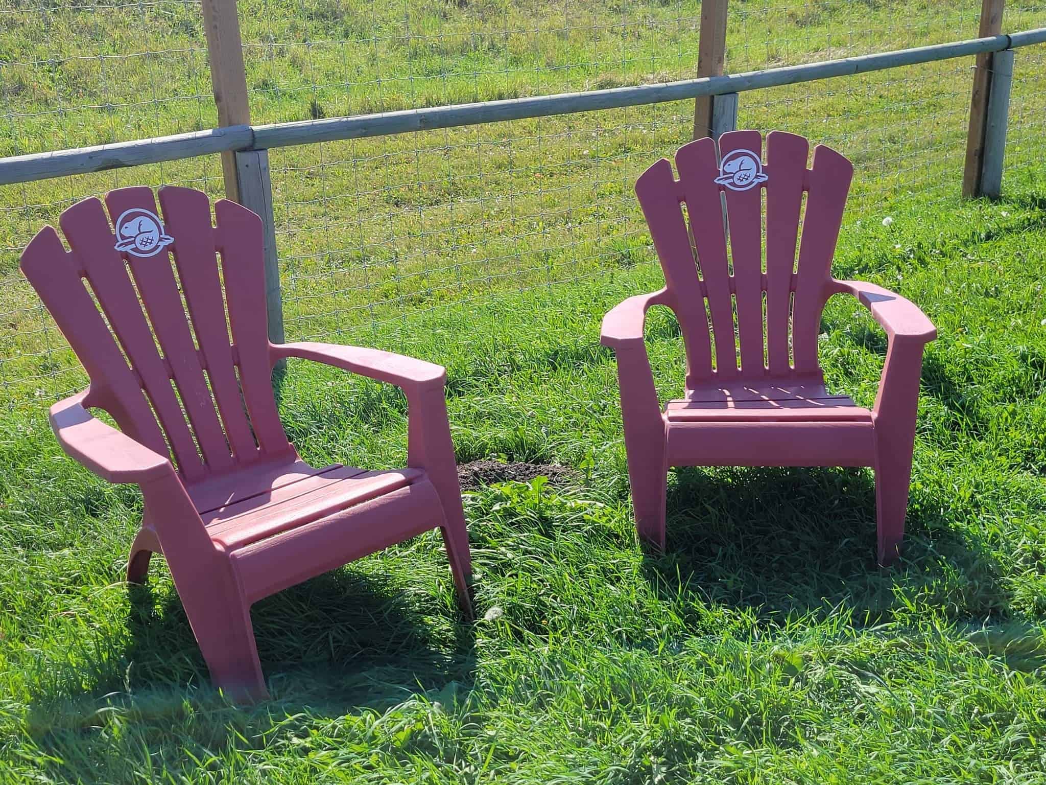There are 2 sets of red chairs at the Bar U Ranch in southern Alberta