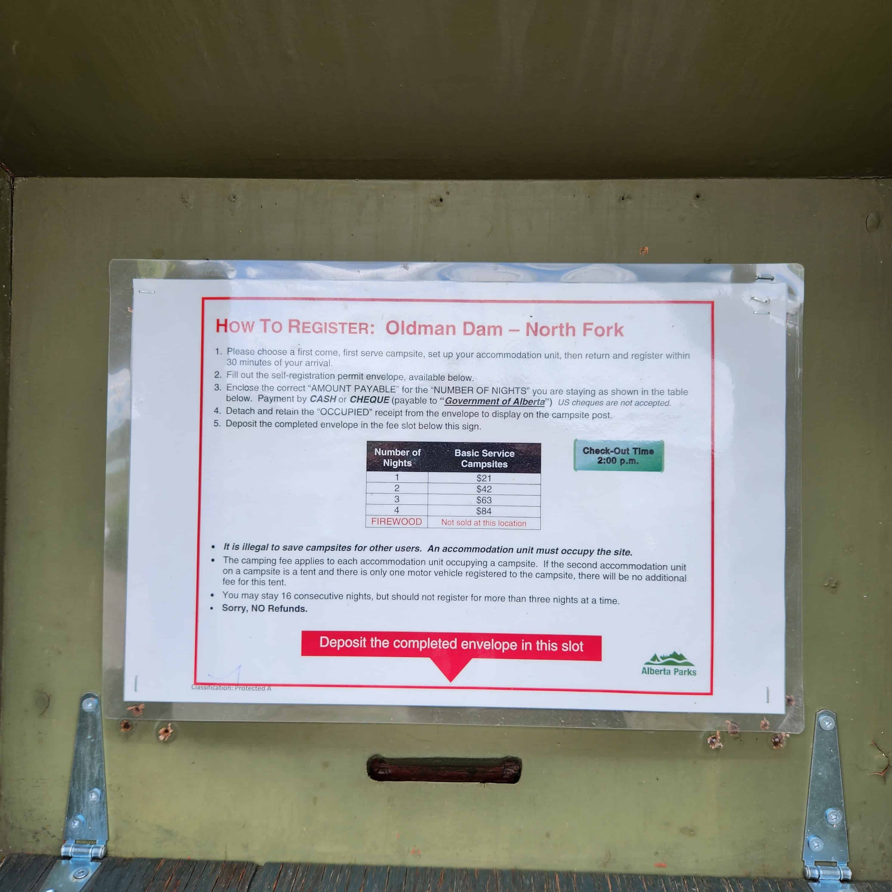 At the North Fork Campground, you sinply register yourself after picking a spot. Simple and easy, no need to plan ahead to stay here. It can be a last minute decision!