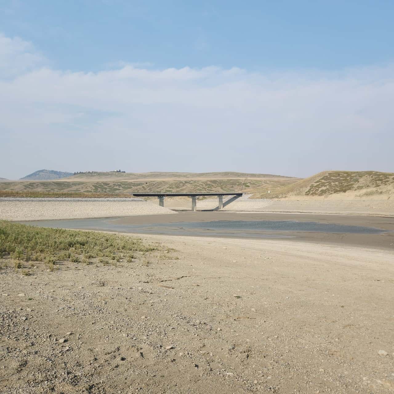 August 2023 on the Oldman River at North Fork Campground. As you can see, there is no water left. Except for a tiny trickle through the mud.