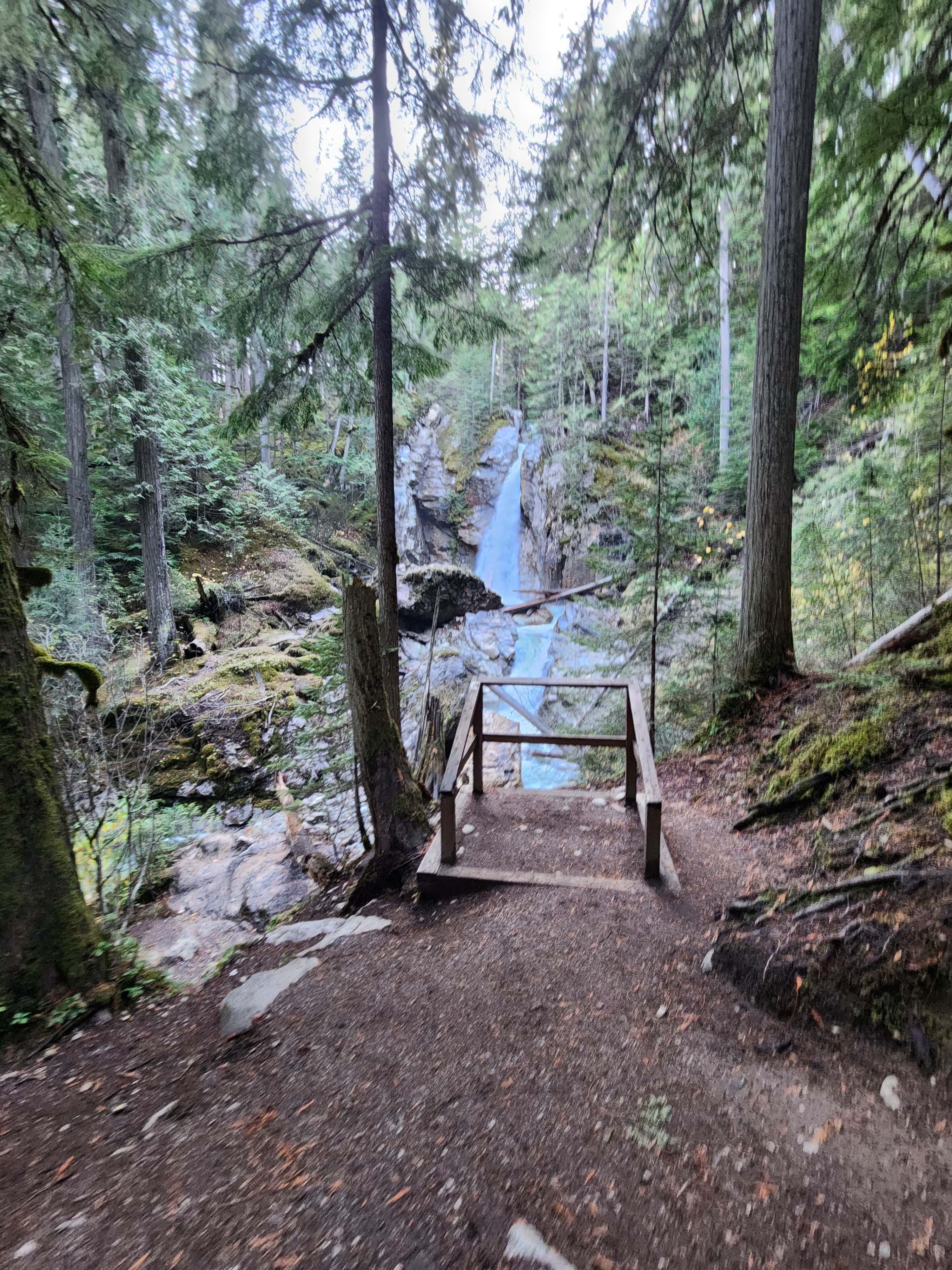 The trail is very well used in this area. There were plenty of people around the trails at Begbie Falls on a weekday in October.