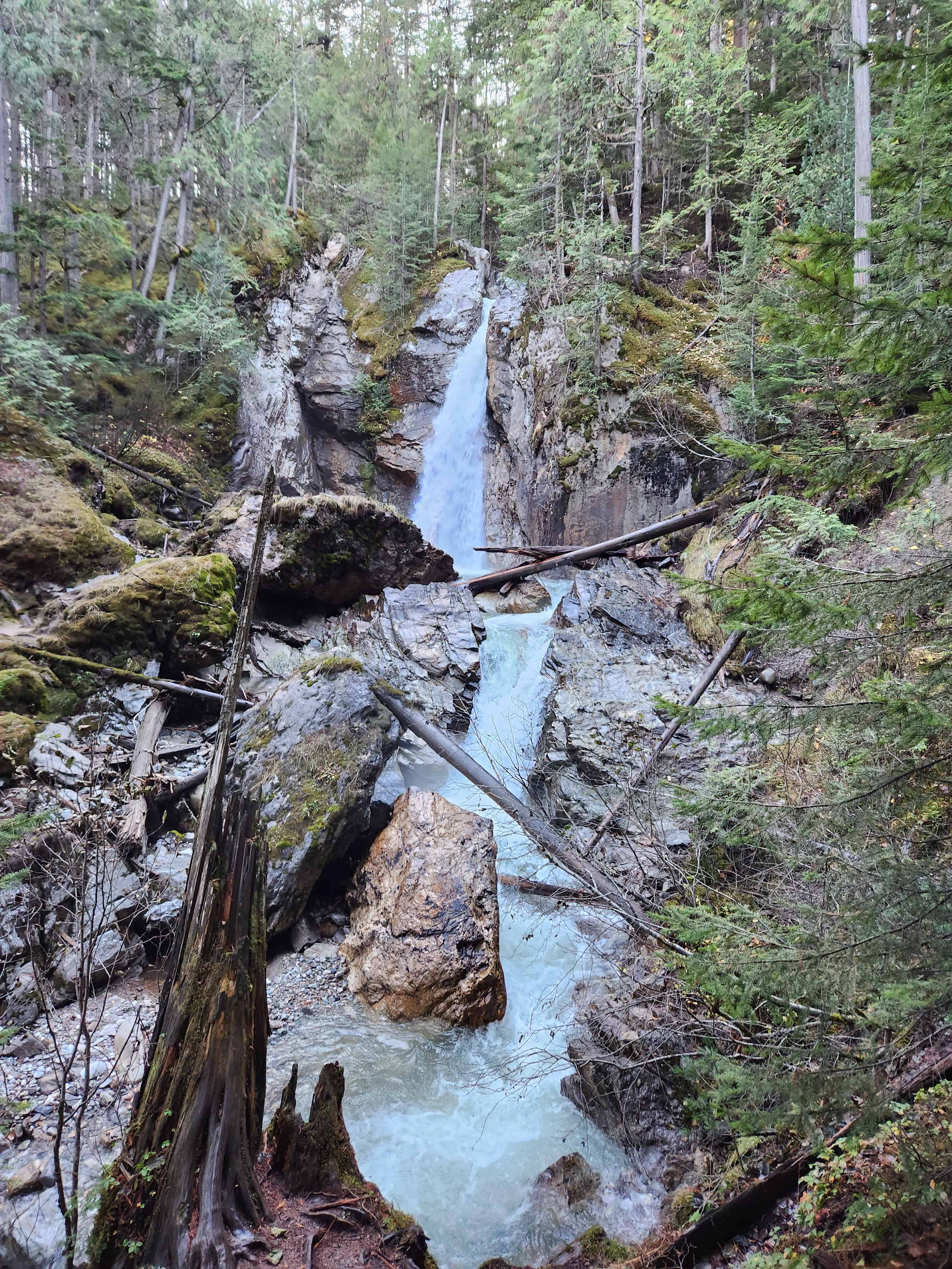 The rugged terrain around Begbie Falls is beautiful. As Begbie Creeks finds its way to Upper Arrow Lake