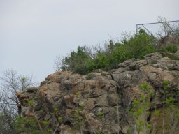 Sandstone cliffs where the carvings are located, only one of five sites in Canada where carvings are on the horizontal surface of cliffs and not vertical face.