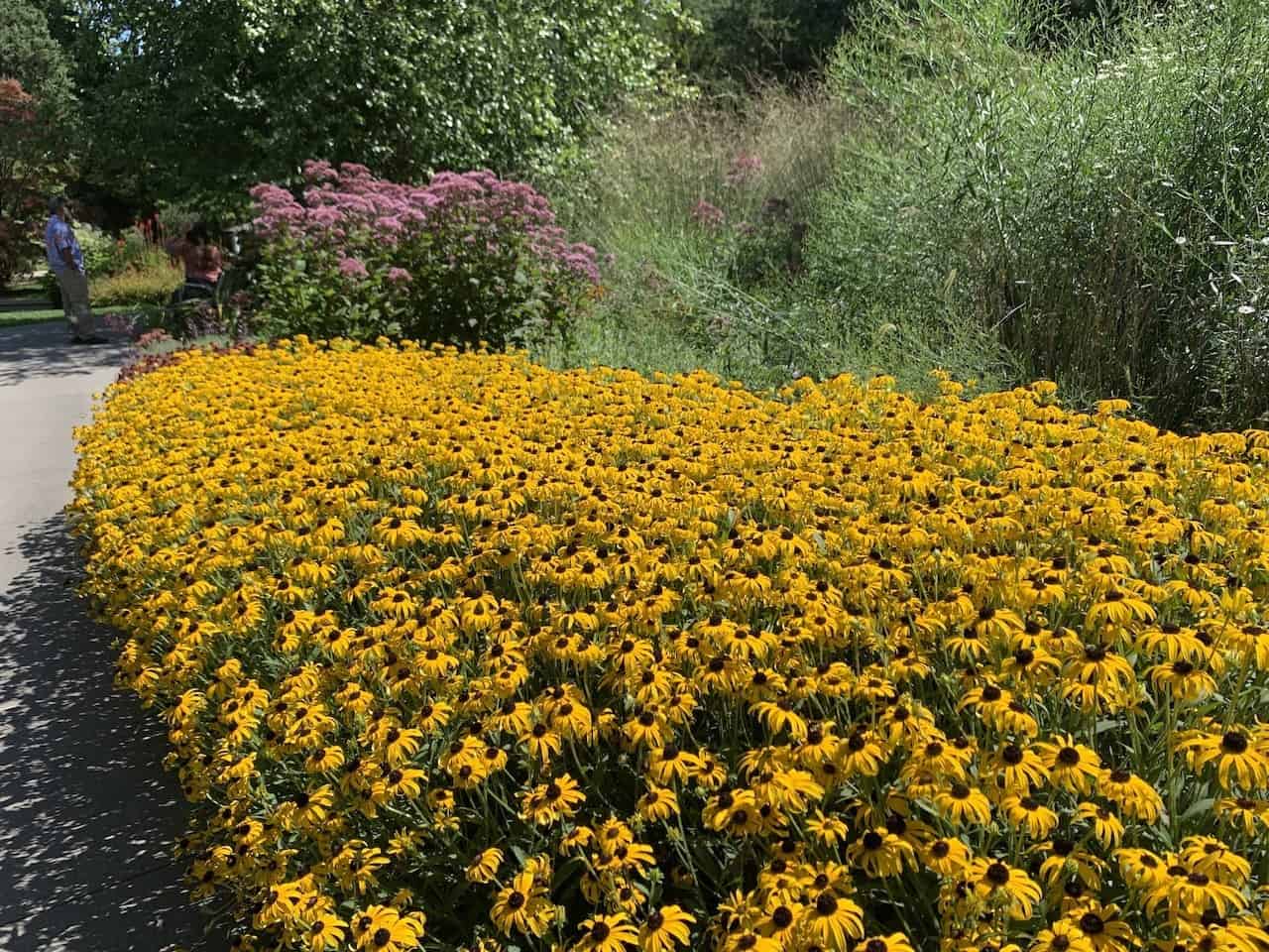 Beautifully coloured flowers and plants line the walkways as you walk and explore the paths at the Rock Garden in Hamilton, Ontario.